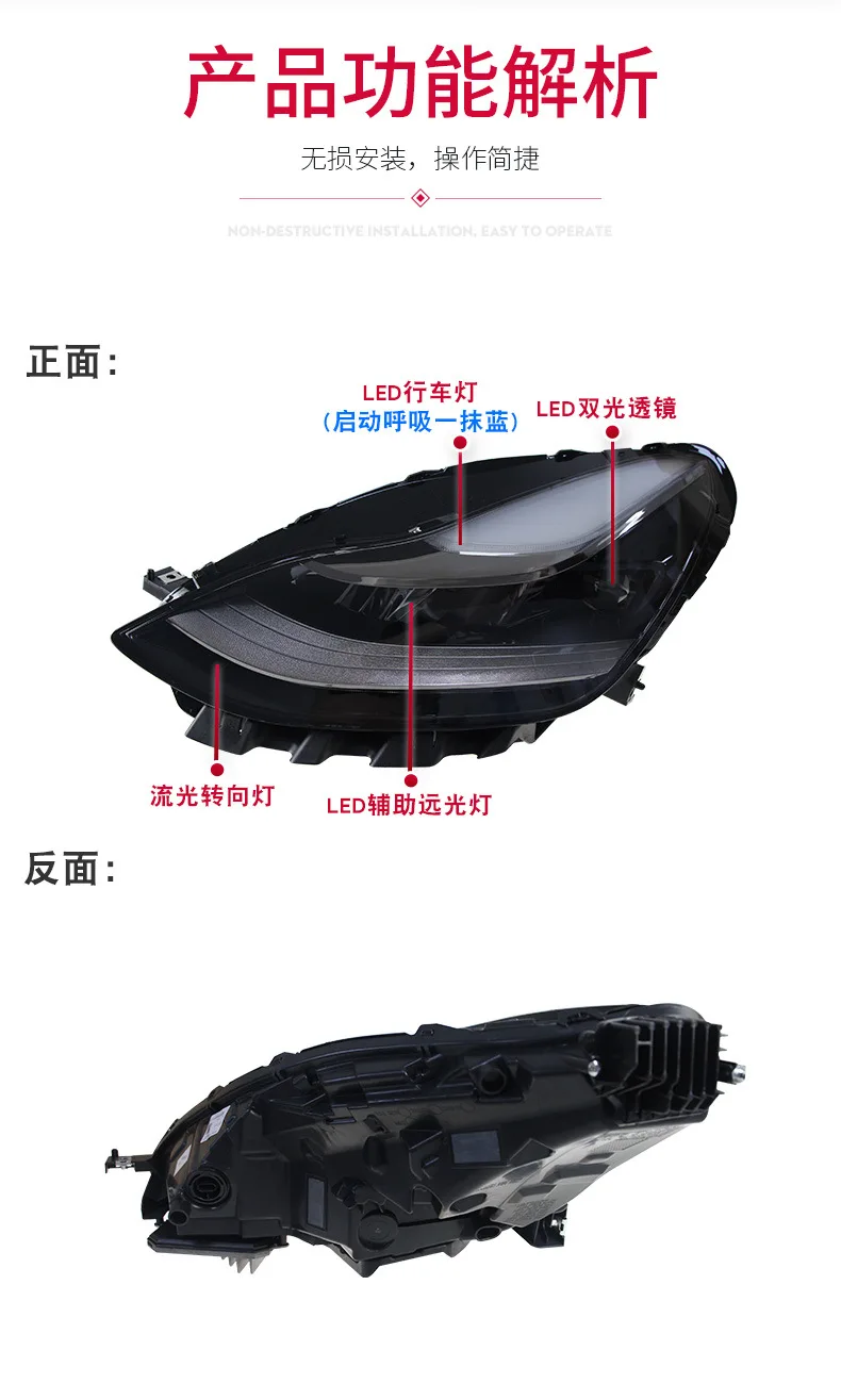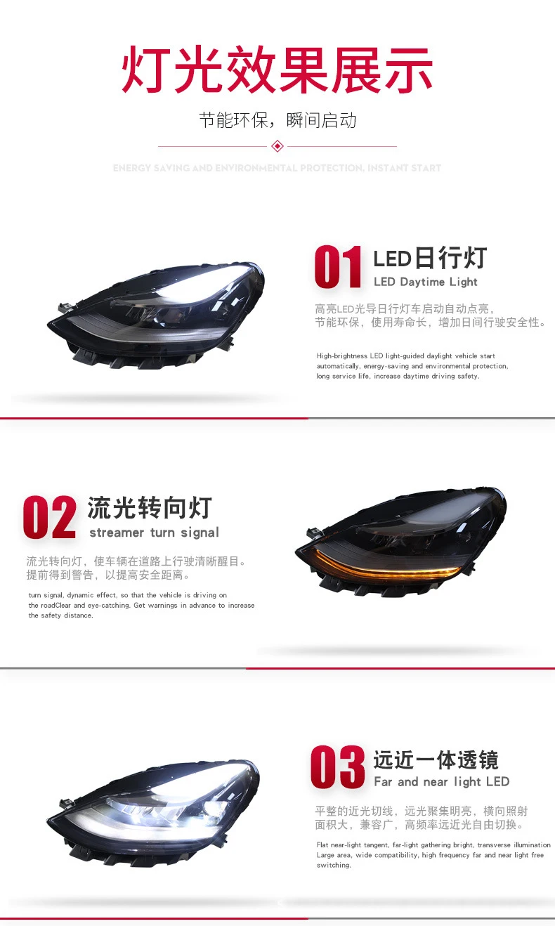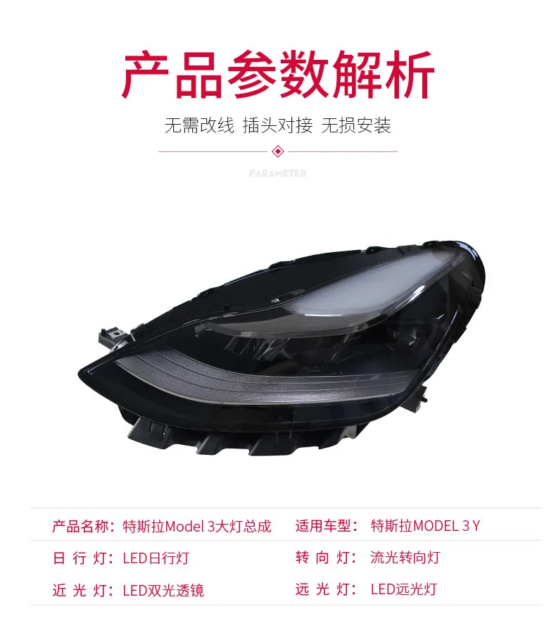1 Set Headlight Assembly Auto Part Blue DRL Start Animation Daytime Running Light For Tesla Model 3 Model Y 2017-2022 Head Lamp