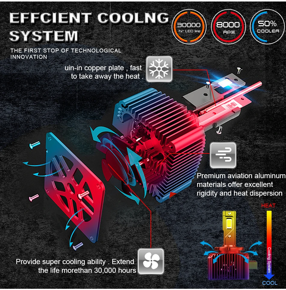 3.Double Heat Dissipation System, High Speed Fan Cooling & Aluminum Alloy Material.