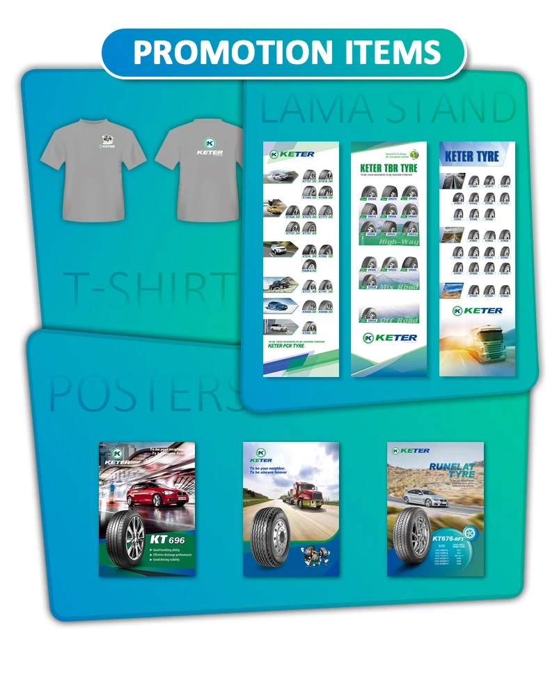 Now we have 4 private brands: KETER, INTERTRAC, NEOTERRA, GREENTRAC, including all series of tyres in TBR, PCR and Bias OTR, also have the Port used tyres, Forklift,Skid steer tires and so on. All our products have passed the certifications of ISO9001, ISO/TS16949, CCC, E-mark, DOT, GSO/GCC, SONCAP, INMETRO and NOM.