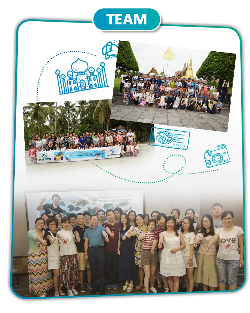 Meantime, we have our own Professional Marketing Team, which is specializing in marketing for Keter and Intertrac brand, to design and prepare the Promotion items for us, also help customers achieve marketing plan in their local market and so on.