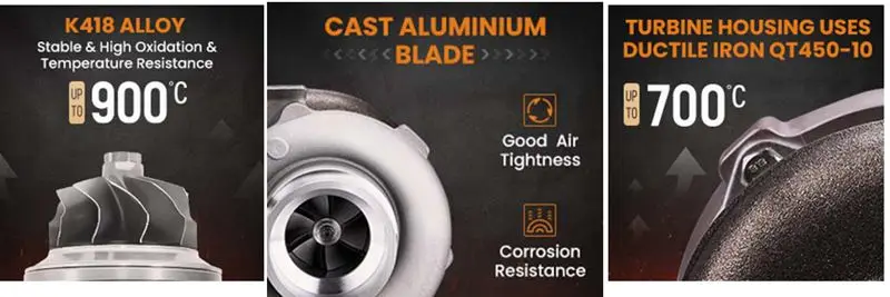 2. Steel turbine wheel:K418 alloy – high oxidation stability and resistance up to 900℃