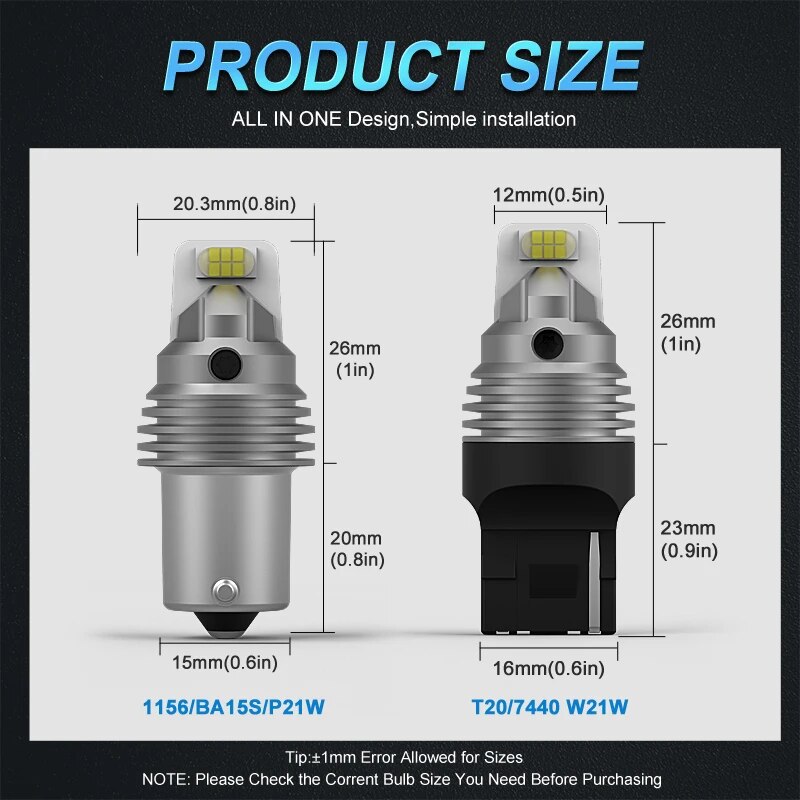 - Model Name 2: T20 7440 W21W LED Bulb