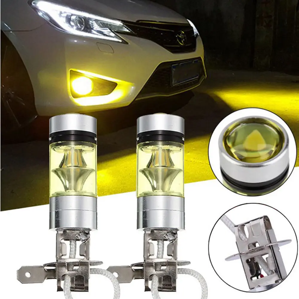 2PCS Led Fog Lamp 4300k Yellow LED H3 100W High Power 100W 2828 Car Fog Light Bulb DRL 2000LM High-brightness Fog Lamp Wholesale