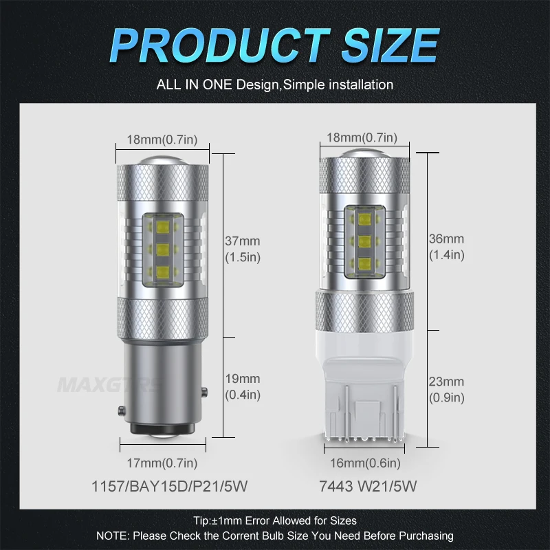 2 Pcs BAY15D 1157/7443 W21/5W LED LAMP