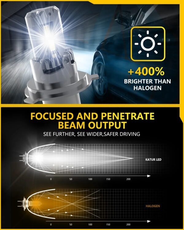 • H4 LED Turbo Headlight: 400% brighter than halogen bulb