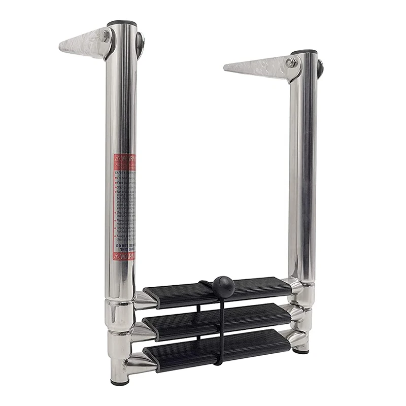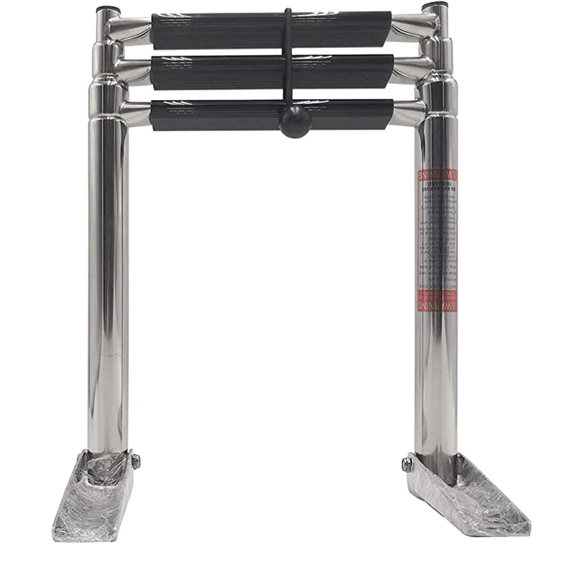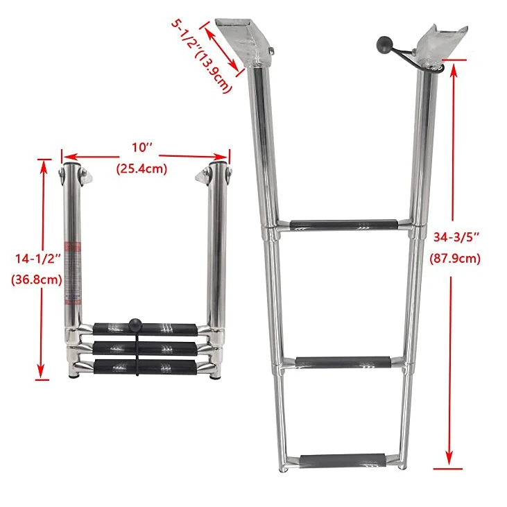Hinged bracket allows for the ladder to fold over platform for easy fitting