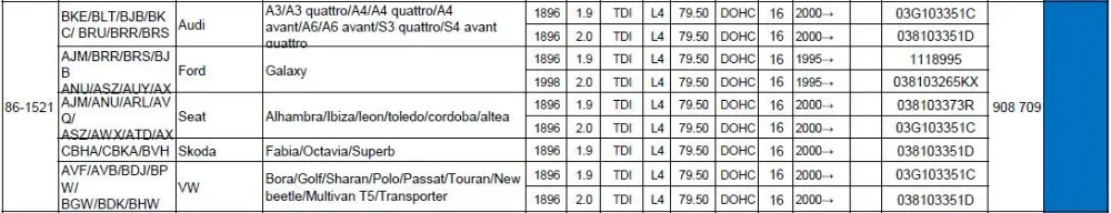 - Application ..: For Seat Fabia Octavia Superb 1896cc 1.9TDi+2.0TDi,2000-