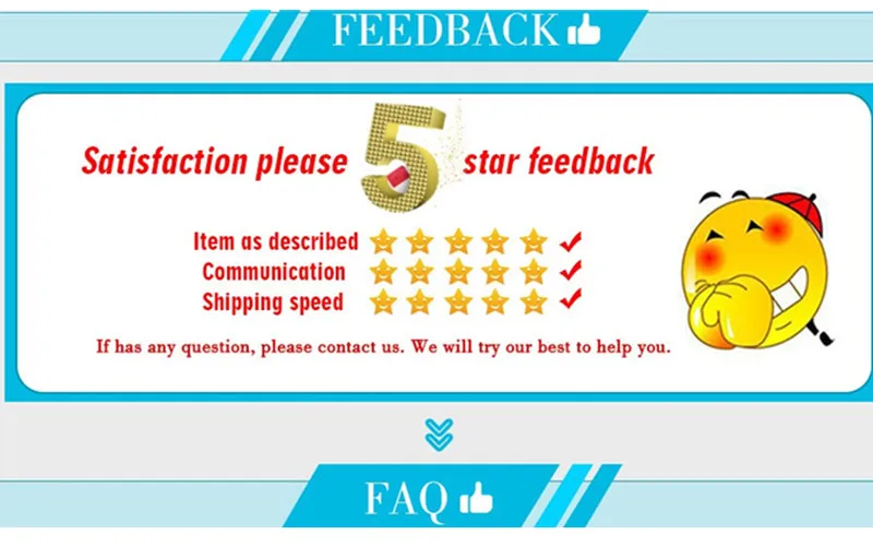 If you have any problems with our items or services, please feel free to contact us first before you leave negative feedback. We will do our best to solve any problems and provide you with the best customer services.