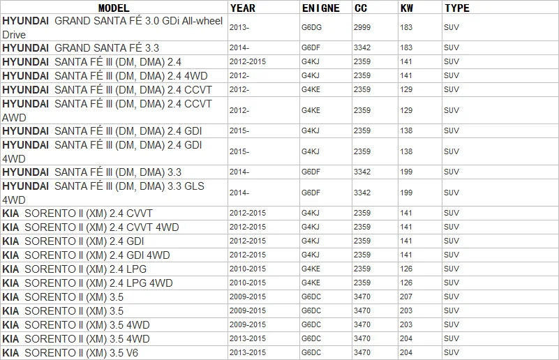 Suitable Vehicle List: