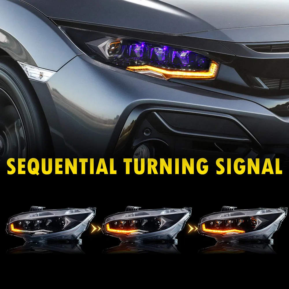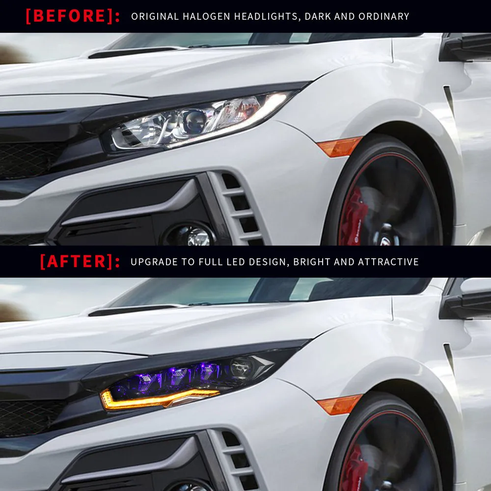 Auto LED Lighting Headlight Crystal Star Diamond Design For Civic 10th 3/2 Hatchback FK7 FK8 FK1 FK4 16-21 DRL Car Front Light