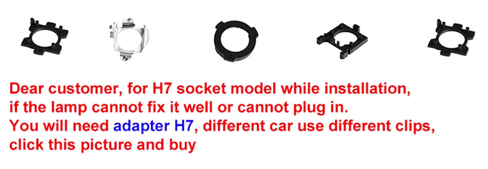 Some H7/H1 lamp holders of some cars are not standard designs, and additional lamp holders are needed . If you are not sure whether you need an adapter, please contact our customer service and attach a photo of the lamp holder structure. We will provide assist