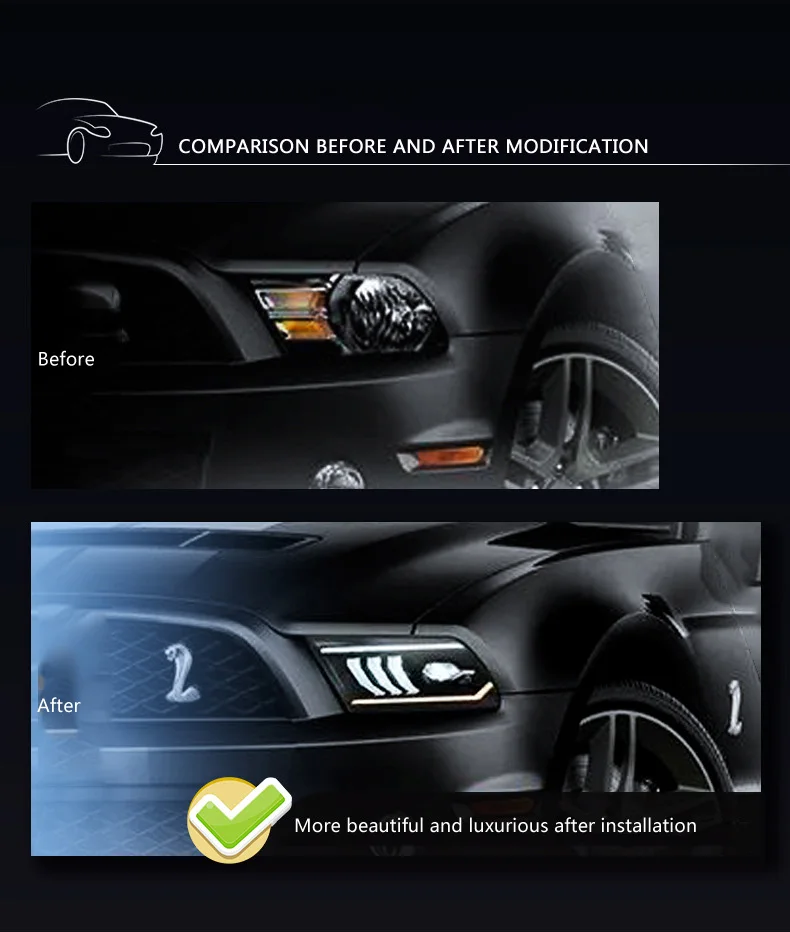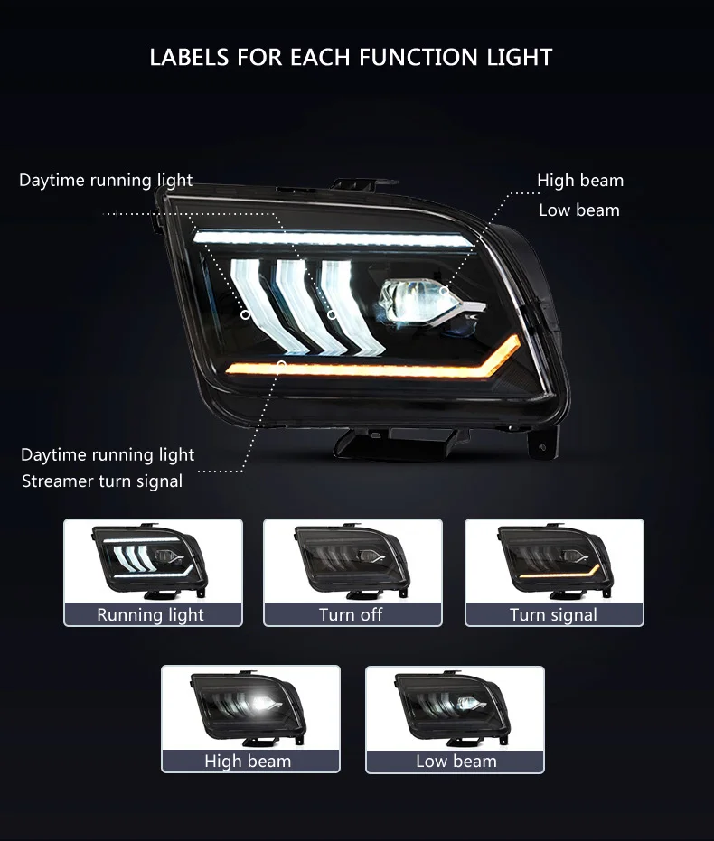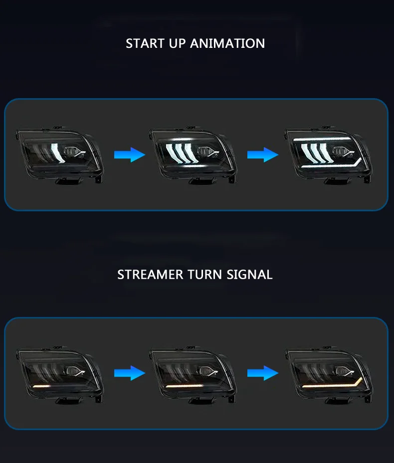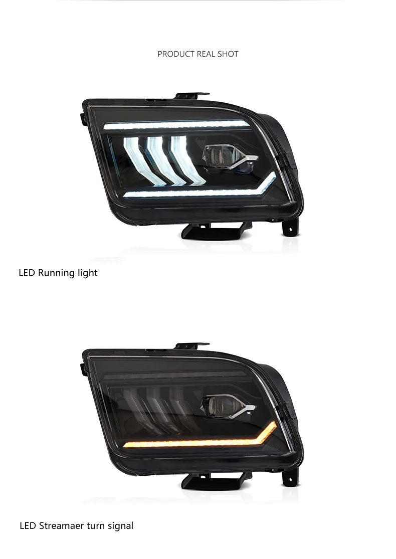Car Accessories Headlight Assembly For Ford Mustang 2005-2009 LED Daytime Running Light Dynamic Streamer Turn Signal Indicator