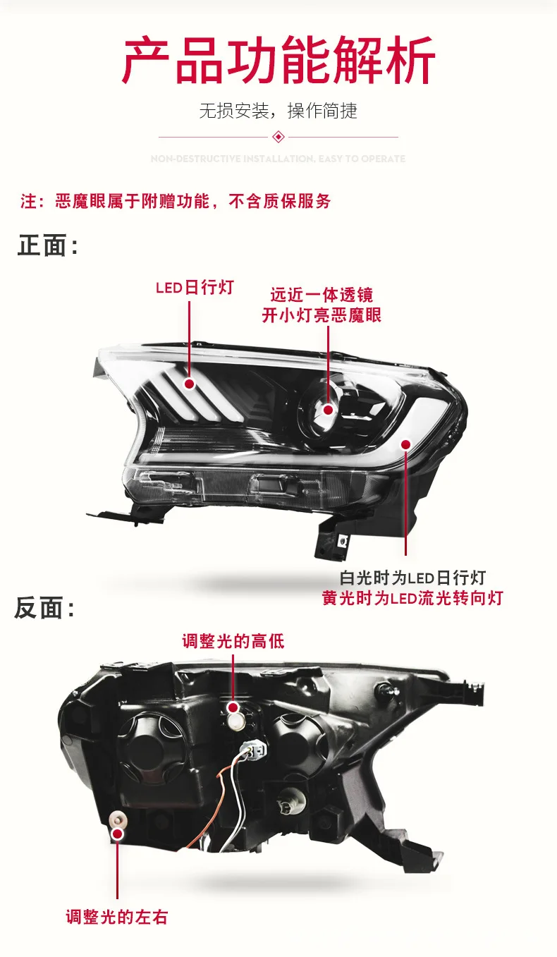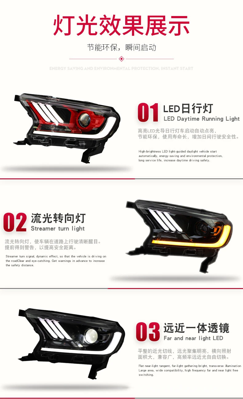 Car Headlight Assembly Dynamic Streamer TurN Signal Indicator For Ford Road Shaker Ranger 2016-2019 LED Xenon Lamp Head LightsCar Headlight Assembly Dynamic Streamer TurN Signal Indicator For Ford Road Shaker Ranger 2016-2019 LED Xenon Lamp Head Lights