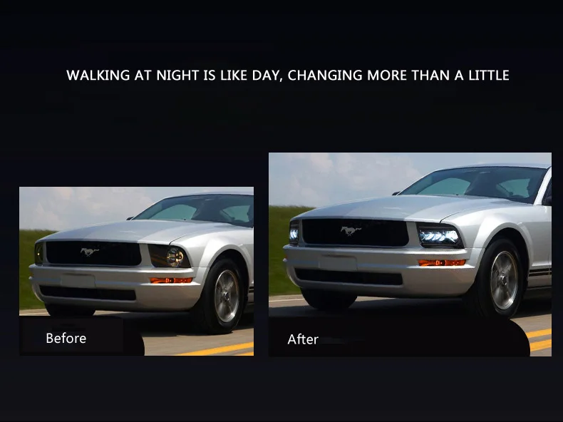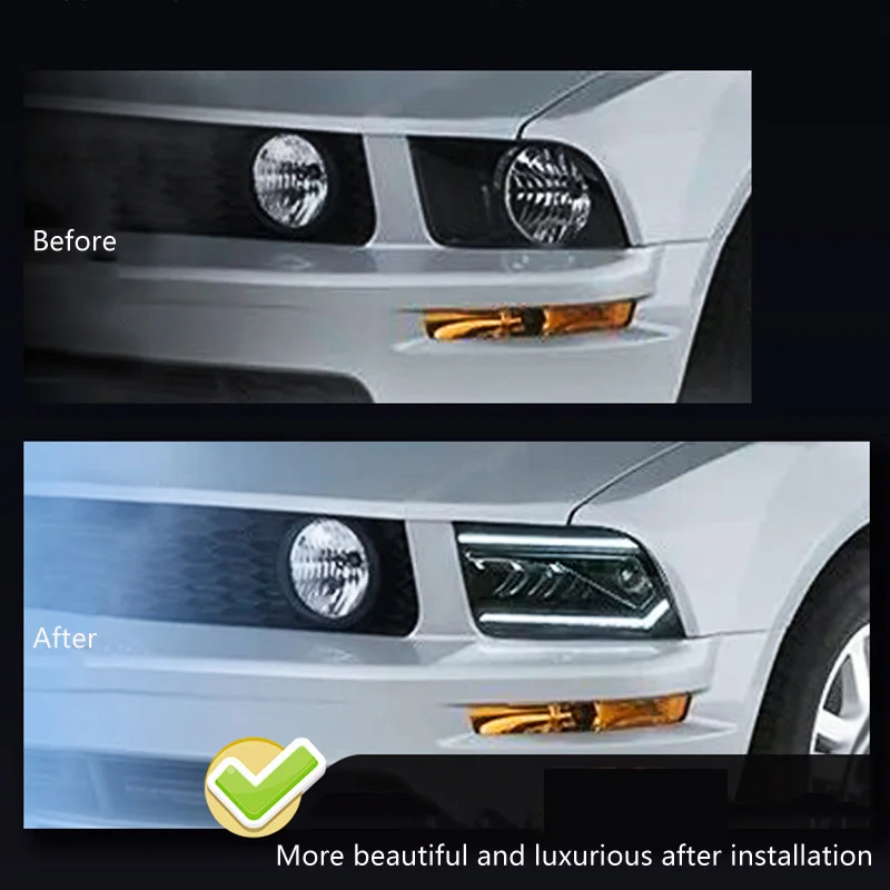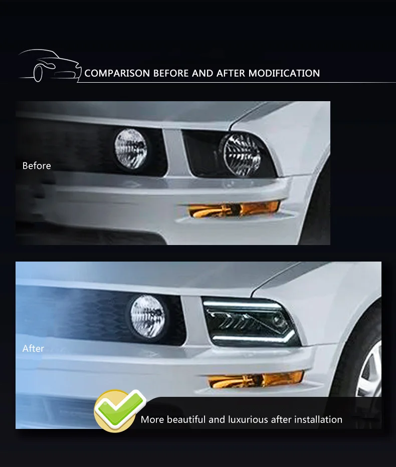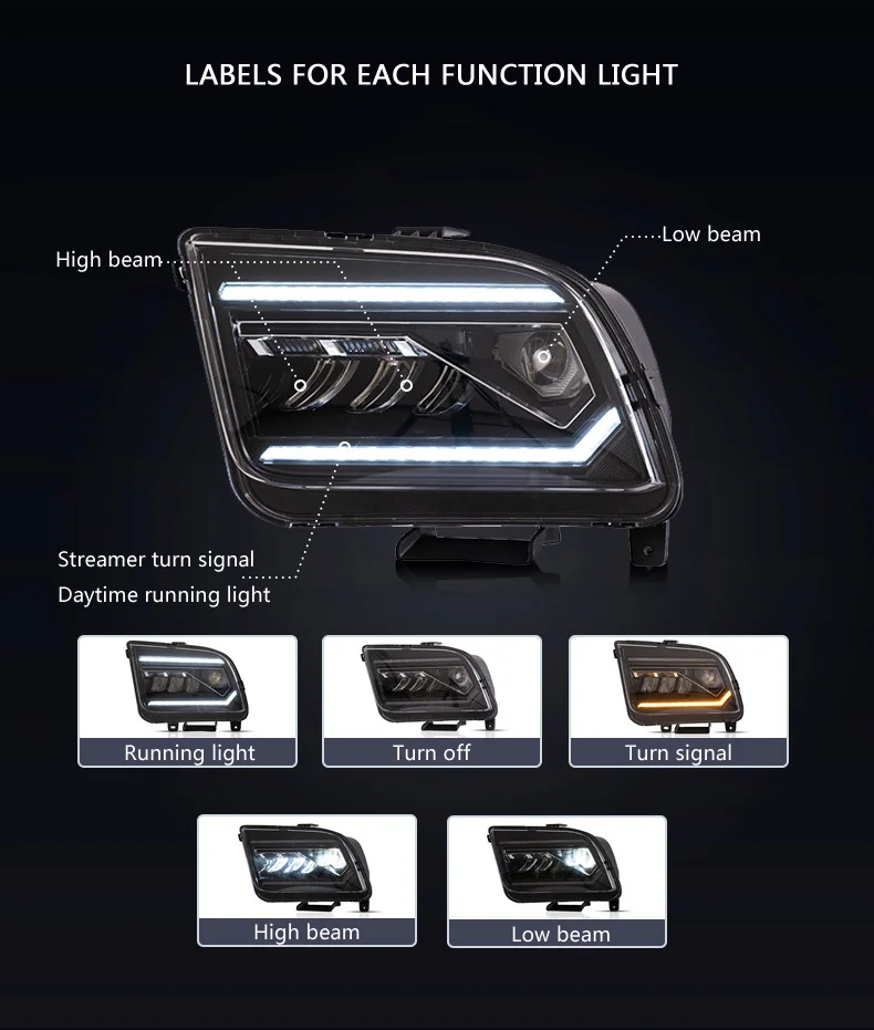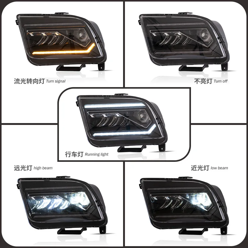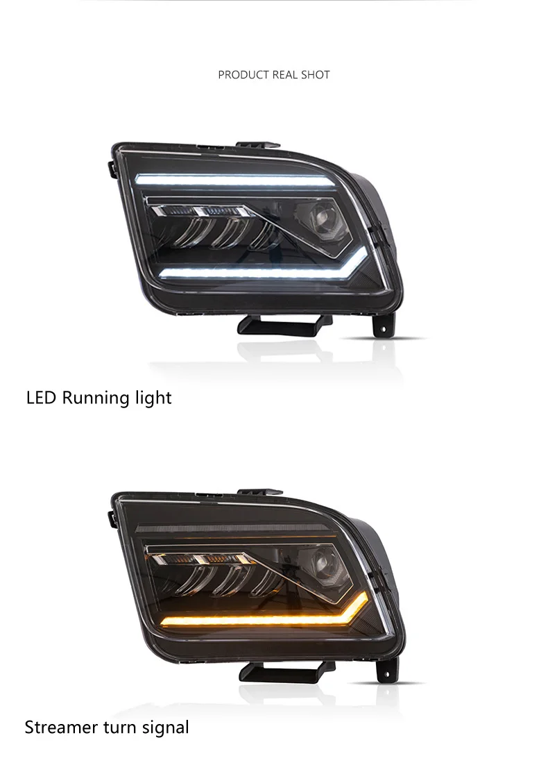 Car Headlight Assembly Front Lamp LED Daytime Running Light Dynamic Streamer Turn Signal Indicator High/Low Beam For Ford Mustang 05-09