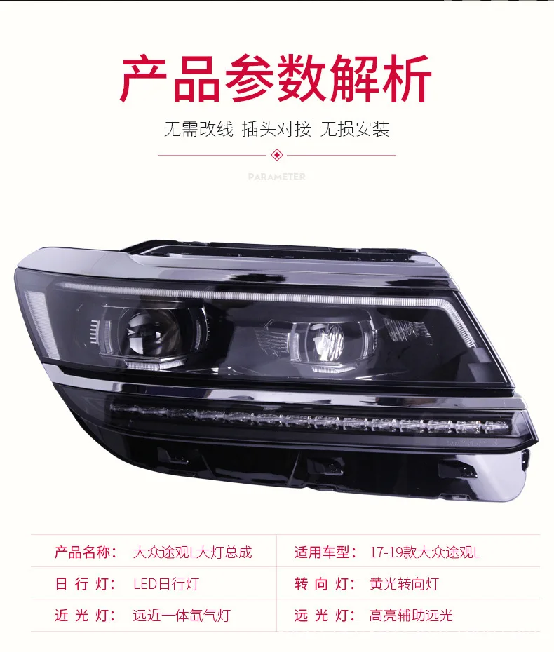 Car Headlight Assembly Yellow Turn Signal Head Lamp Front Light Daytime Running Lights For Volkswagen Tiguan L 2017-2019