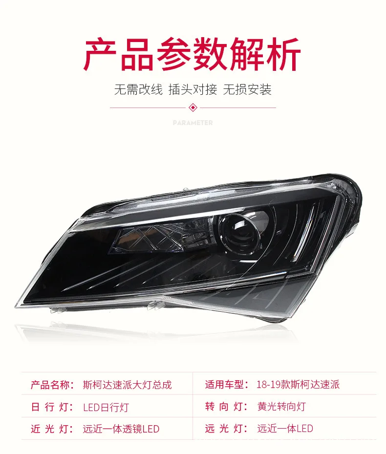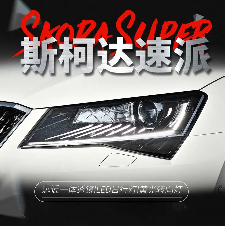 Car Headlights Assembly DRL Daytime Running Lights For Skoda Superb 2016-2018 Dynamic Streamer Turn Signal Indicator Head Lamp