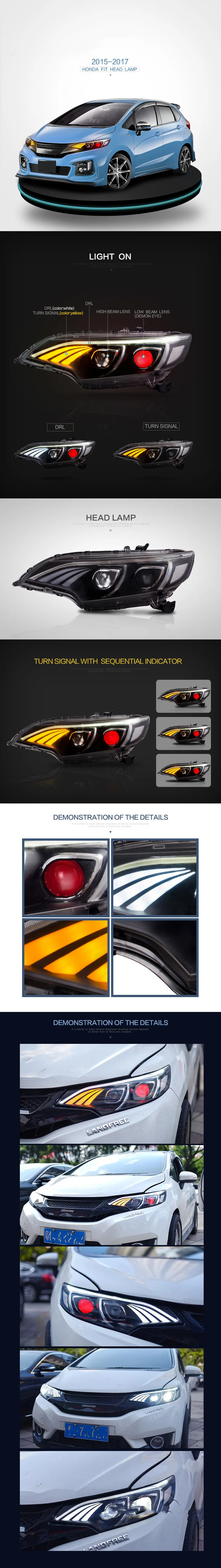 Car LED Daytime Running Light Dynamic Streamer Turn Signal Indicator Headlight Assembly Front Lamp High/Low Beam For Honda Fit 14-20