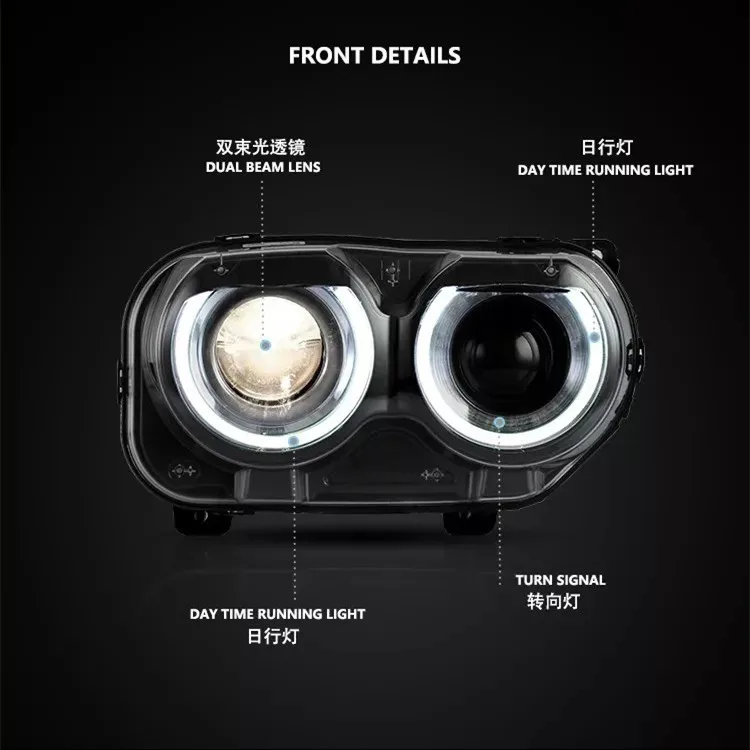 Car LED Front Lamp Daytime Running Lights For DODGE Challenger 2015 Fog Reverse High Beam Lighting Assembly