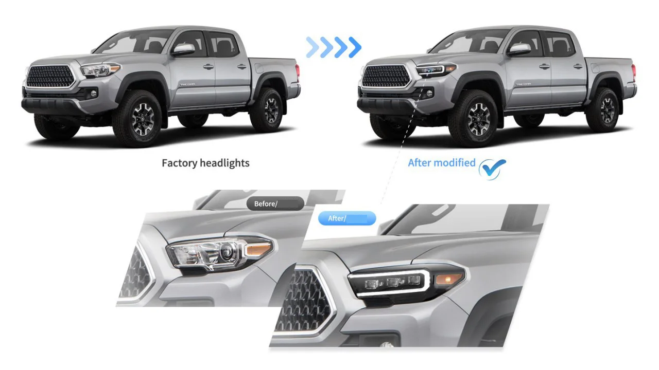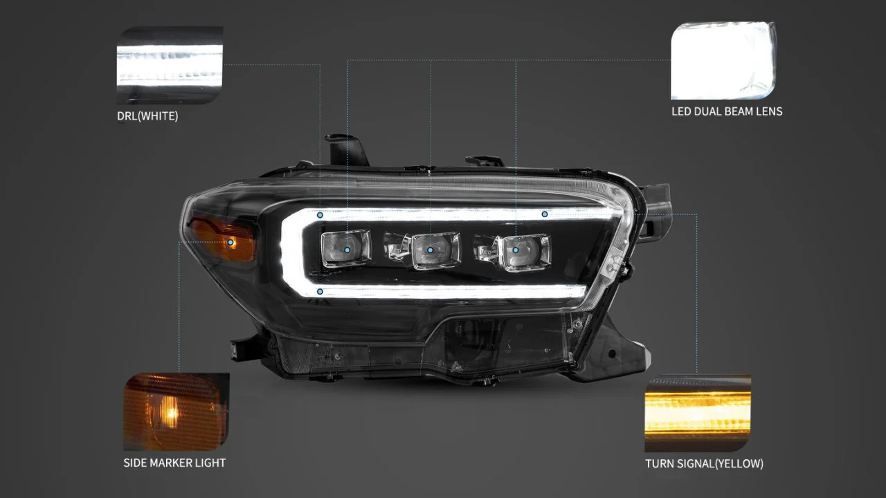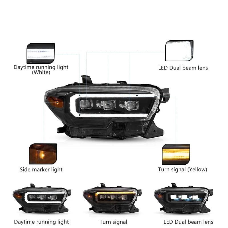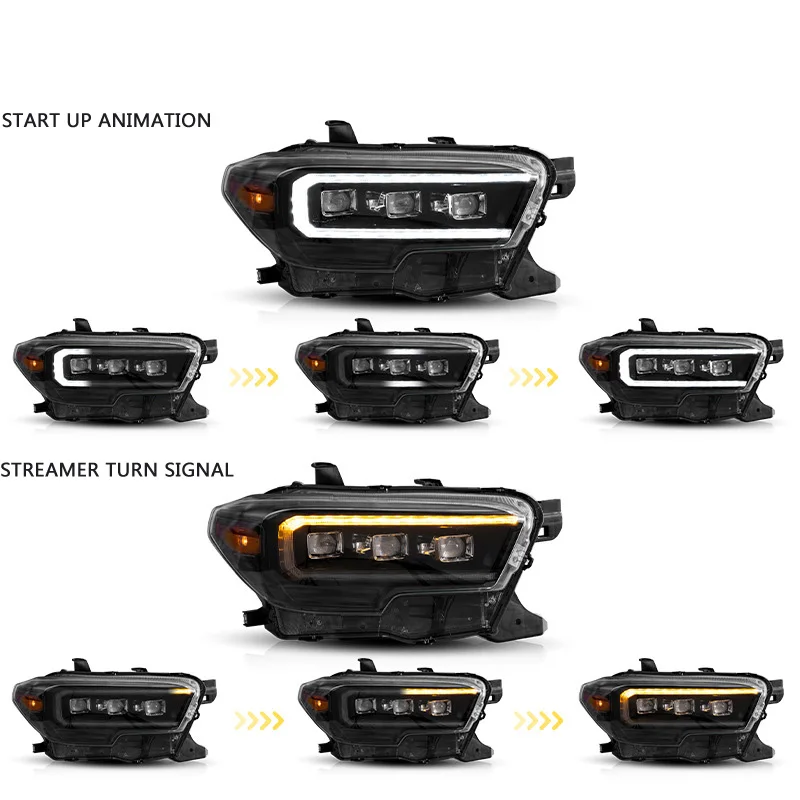 Car LED Headlight Assembly Daytime Running Light Dynamic Streamer Turn Signal Indicator Front Lamp For Toyota TACOMA N300 15-19