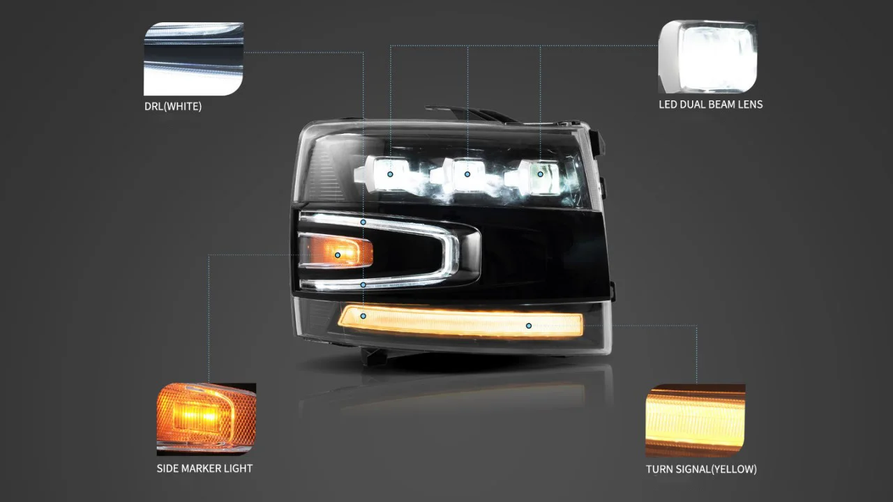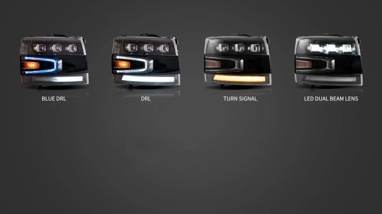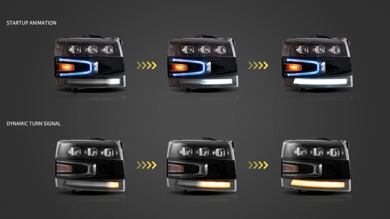 Car LED Headlight Assembly Dynamic Streamer Turn Signal Indicator Front Lamp For Chevrolet 07-13 Silverado Daytime Running Light