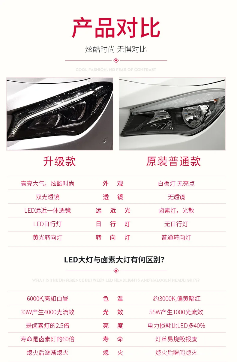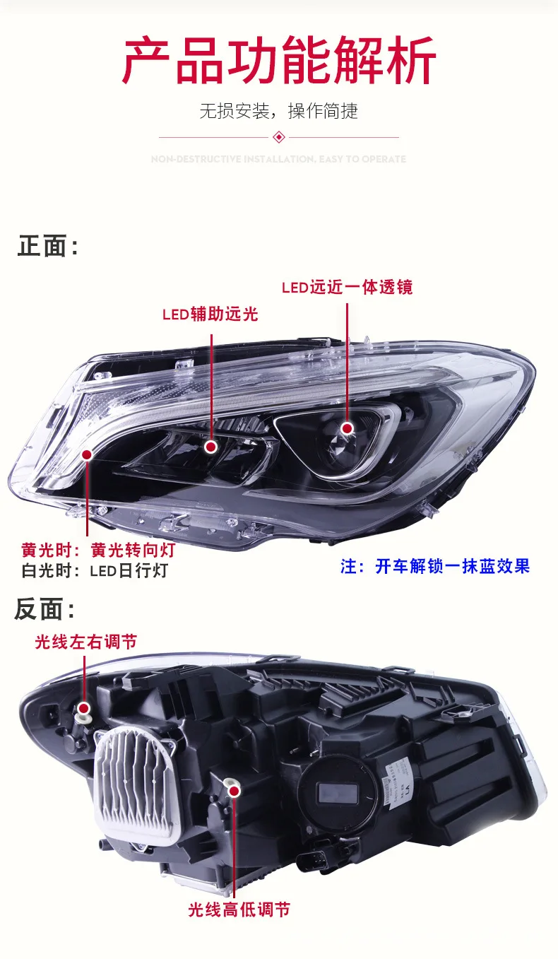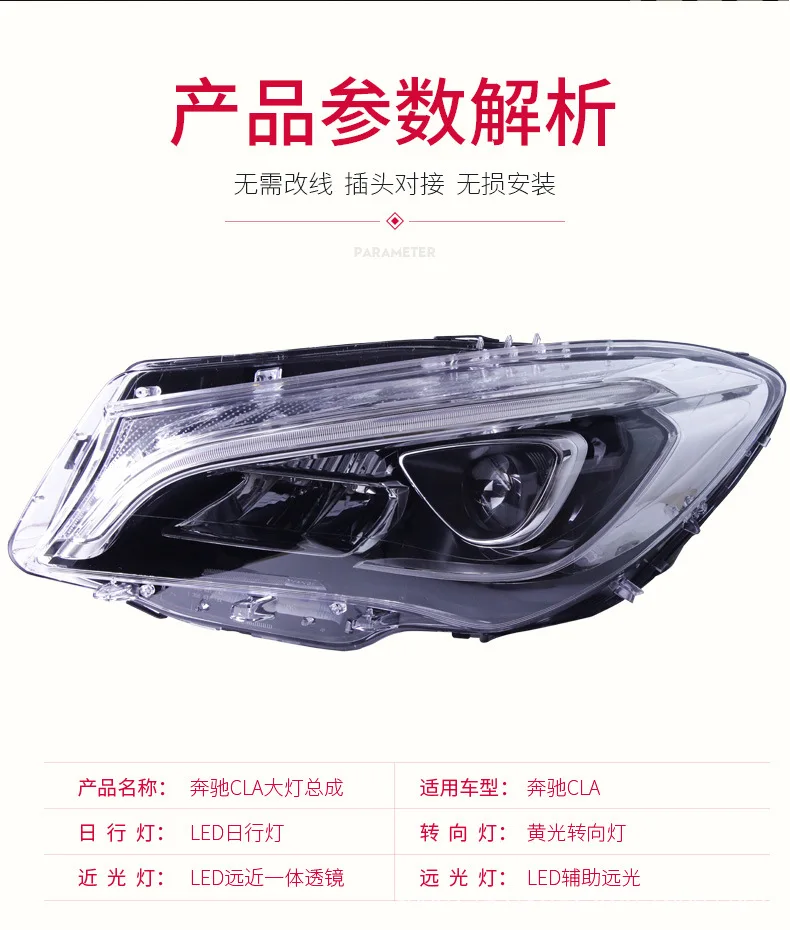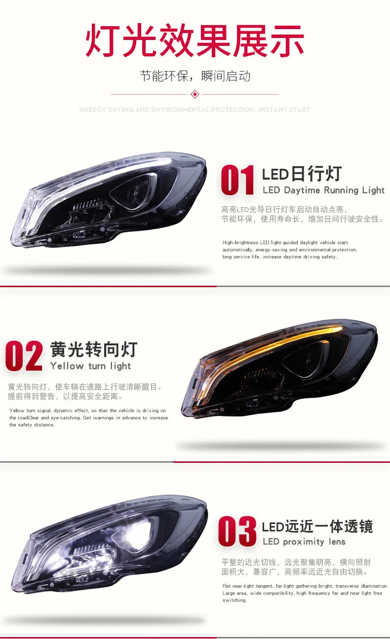 Car LED Headlight Dynamic Streamer Turn Signal LED Daytime Running Light For Benz Cla 2014-2019 Front Lamp