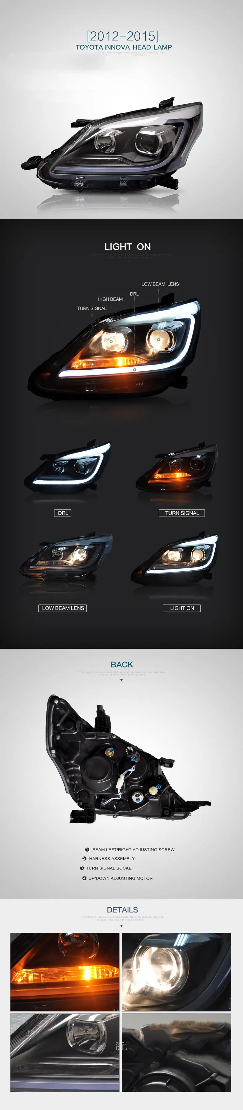 Car Headlight LED Front Lamp Auto Part Accessories For Toyota INNOVA 2012-2015 Dynamic Turn Signal Brake Head Lights