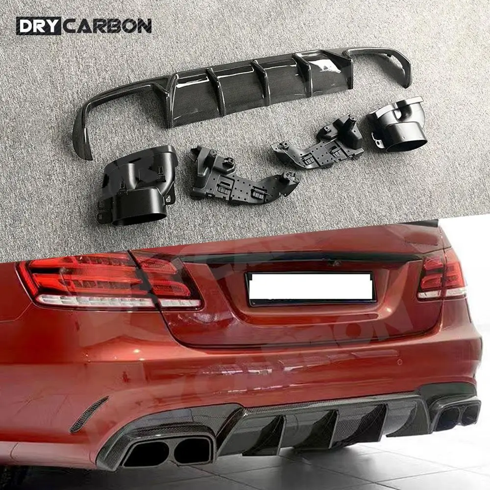 Carbon Fiber Rear Bumper Lip Diffuser With Exhaust tips For Benz E Class W212 E260 E300 E400 E63 AMG 2014 2015 2016 Car Styling
