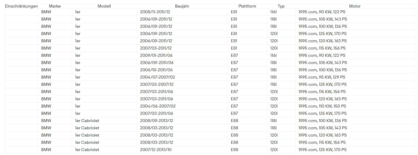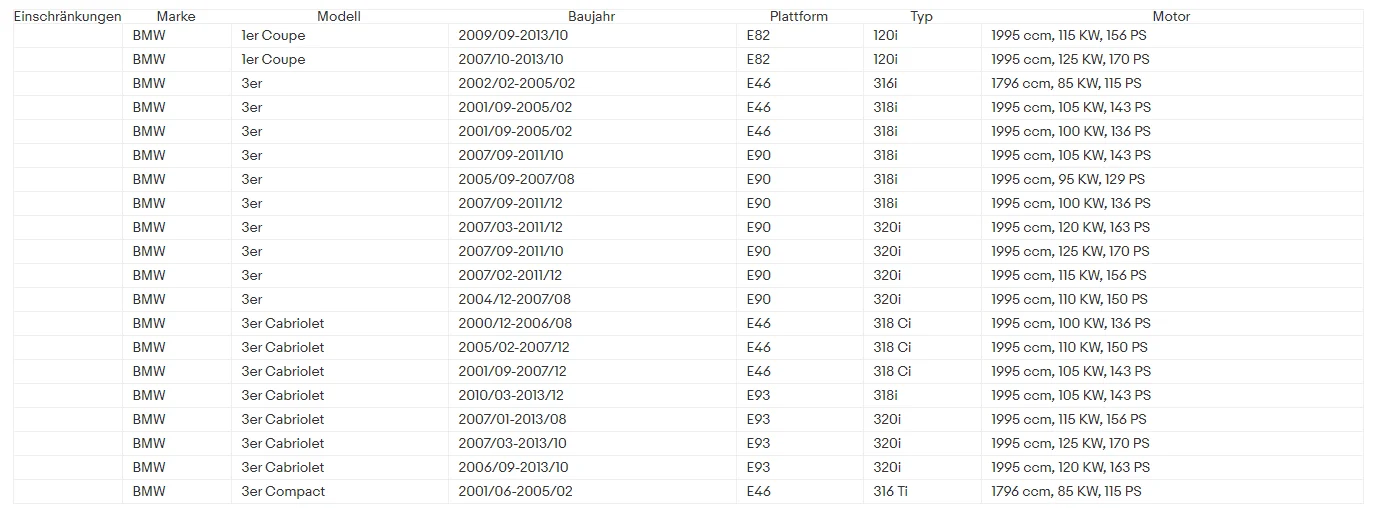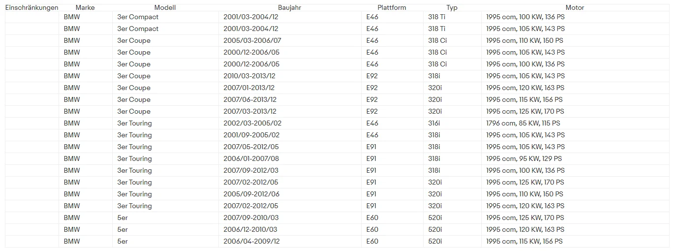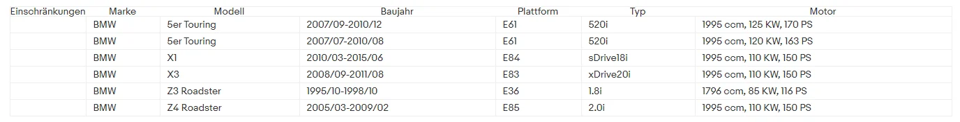 - Interchange Part Number: 11217516040+11247589533+77944600+77946600