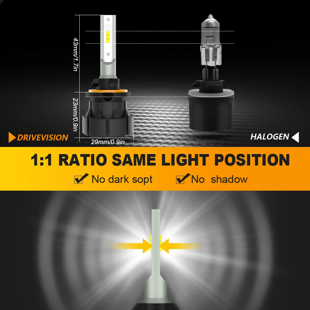 DRIVEVISION 2Pcs H11 LED Bulb P13W 9012 H27 880 881 LED 5202 Car Fog Light Driving Day Running Lamp Auto 12V 20000LM 6000K White