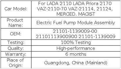Electric Fuel Pump Module Assembly For LADA 2110 LADA Priora 2170 VAZ-2110-70 21101-1139009-00 21101113900900 21101-1139009