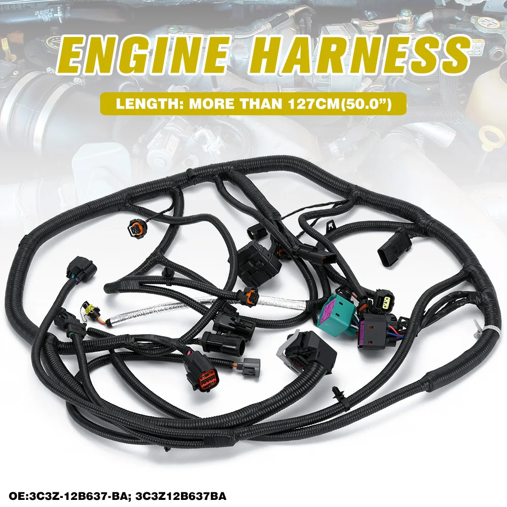 Engine Harness For 03-04 Ford 250/ 350/ 450/ 550 6.0L Powerstroke Replacement Injector Control Module Fuel Injector Complete Wiring Main Engine Harness Assembly 3C3Z-12B637-BA 3C3Z12B637BA