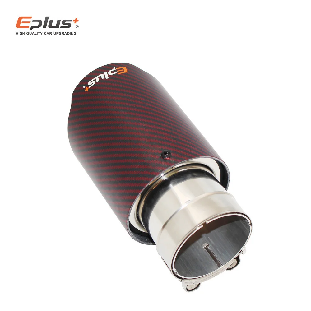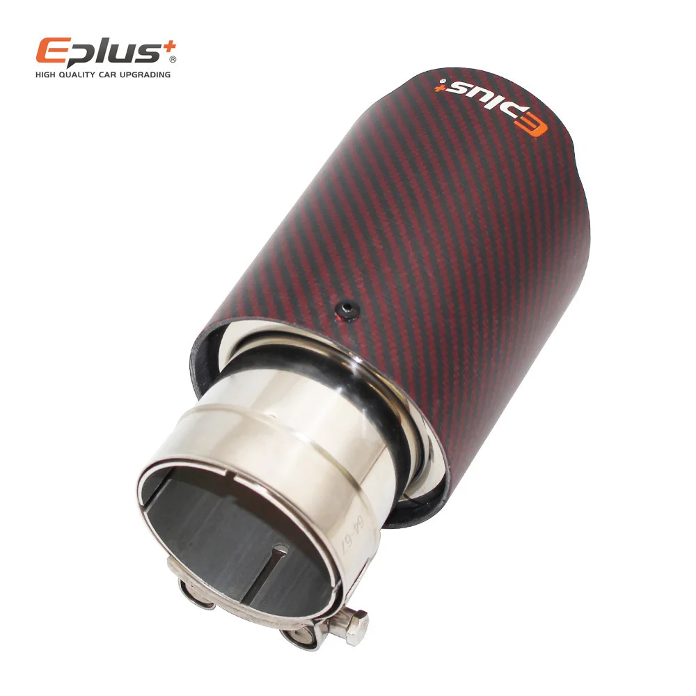 EPLUS Car Red Matte Carbon Fiber Mufflers Tip Exhaust System Pipe Muffler Nozzle Stainless Decoration Universal Straight Blue