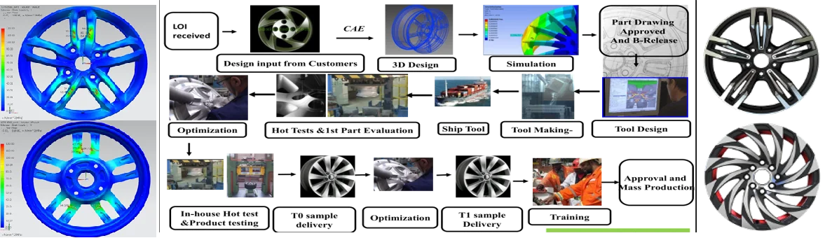 Jiangxi Rongen Wheel Manufacturing Co., Ltd. is a high-tech enterprise specialized in design, manufacturing and sales of auto aluminium alloy wheels. Our products cover forged wheels, casting wheels and flow forming wheels. Currently there are about three hundred employees in our company, nearly thirty percent of them are professional engineers or technicians, and the core members have more than twenty years experience in alloy wheel industry. We have advanced production equipment and a sound detection system. The main production equipment includes: 2 sets of energy-saving smelting furnace, 40 gravity casting machines, 2 sets of continuous heat-treatment line, 50 sets of CNC machining equipment, 60 sets of forging equipment,1 set of flow forming production line, 4 sets of fully automatic coating line. The detection equipment includes: spectrum analyzer, X-ray detection machine, dynamic balancing machine, leak testing machine, salt spray testing machine, impact testing machine, radial fatigue testing machine, bending fatigue testing machine, etc.. Our producing process is strictly followed by GB/T 19001-2016/ISO 9001:2015 / IATF 16949 quality management system, and our products are in full compliance with requirements of TUV and VIA. Our wheels have been exported to Europe, America, Asia Pacific, Middle East and other overseas markets. With high-quality products, just-in-time delivery and good service, Rongen has been one of the most influential and re