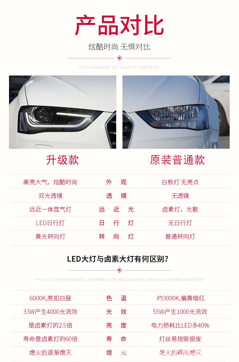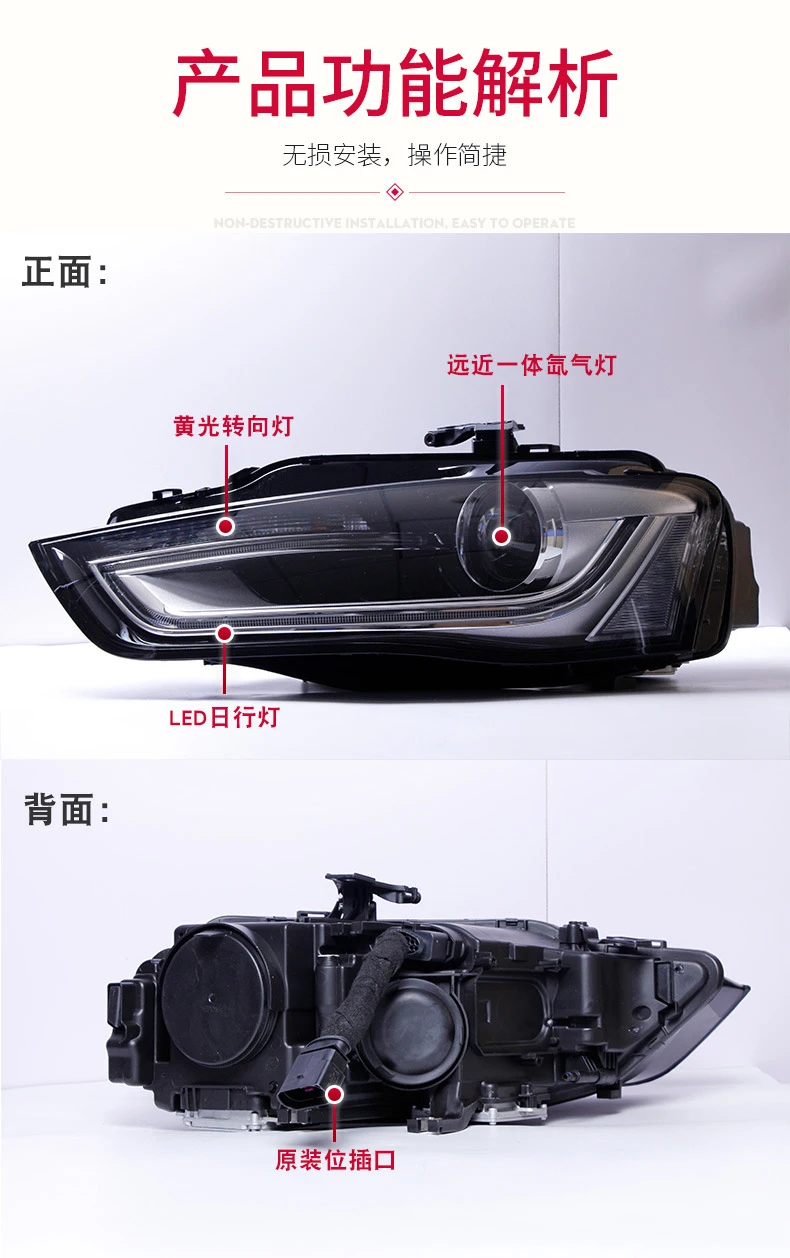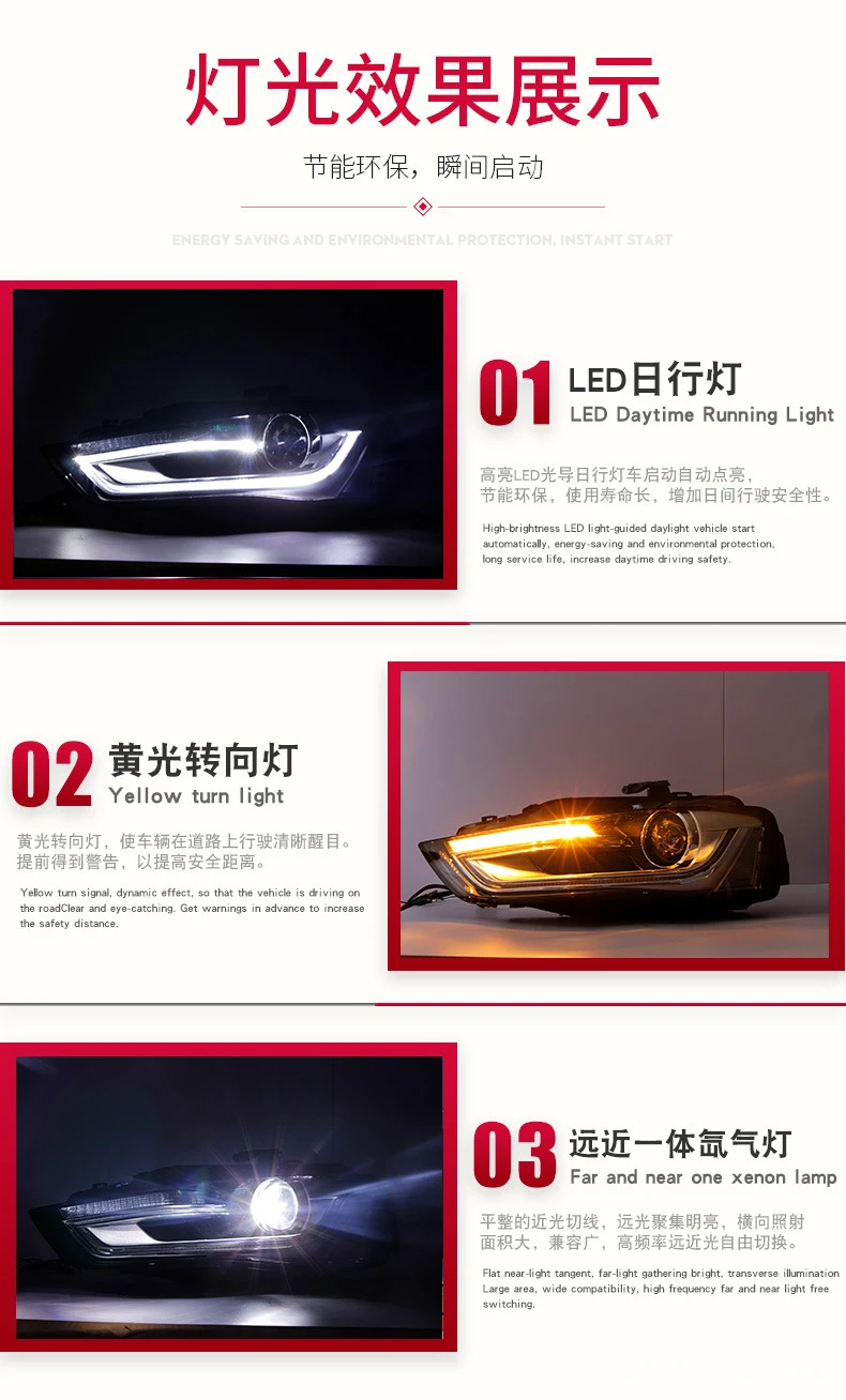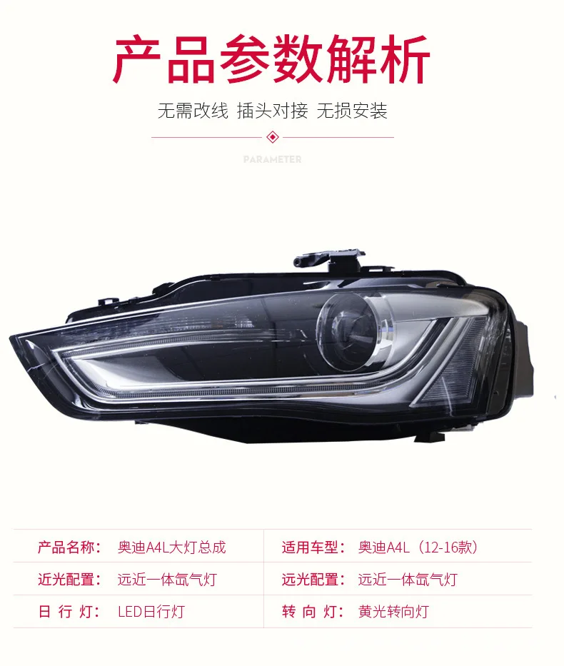 For 12-16 Audi A4L Headlight Assembly DRL Daytime Running Light Head Lamp Dynamic Streamer Turn Signal Indicator Front Light
