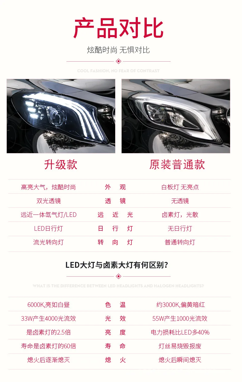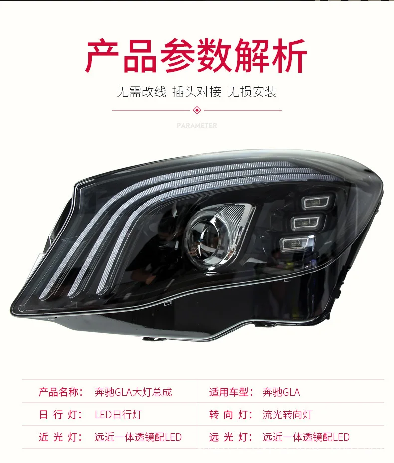 For BENZ GLA 200 260 LED Daytime Running Lights Blue Start Up Animation Front Lamp Headlights Assembly