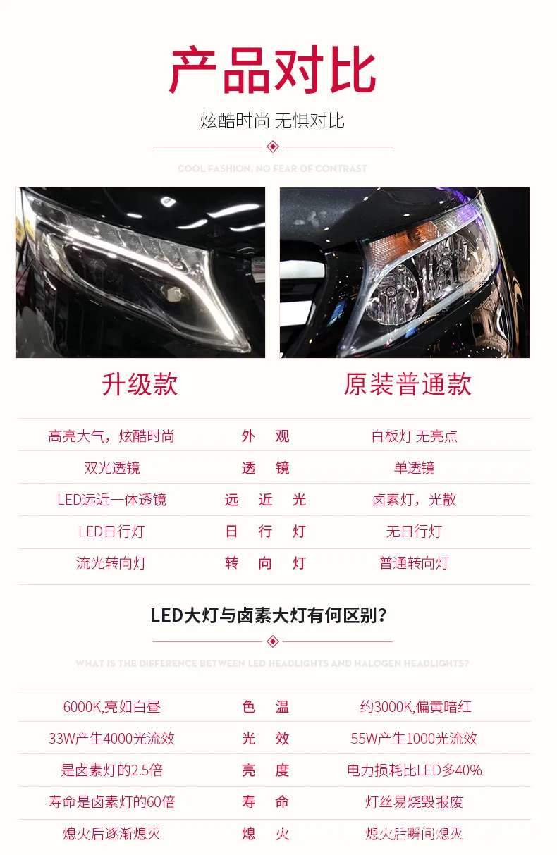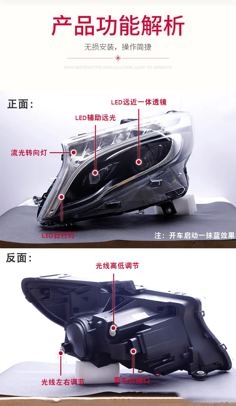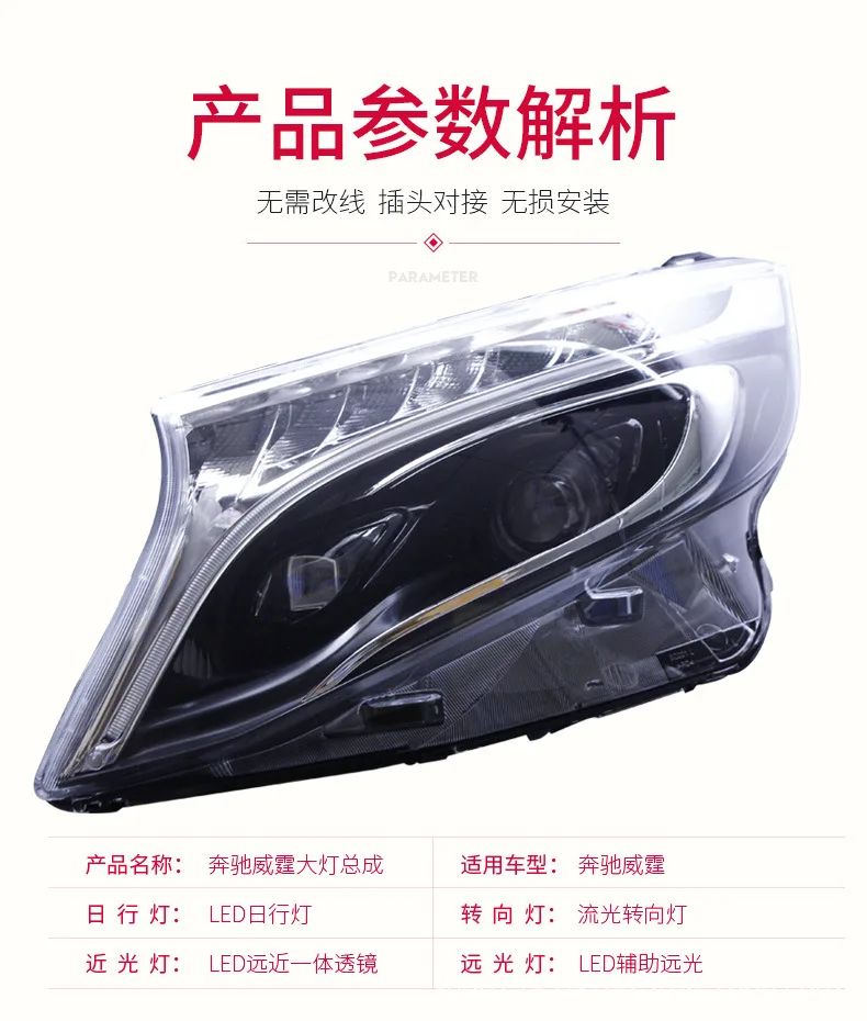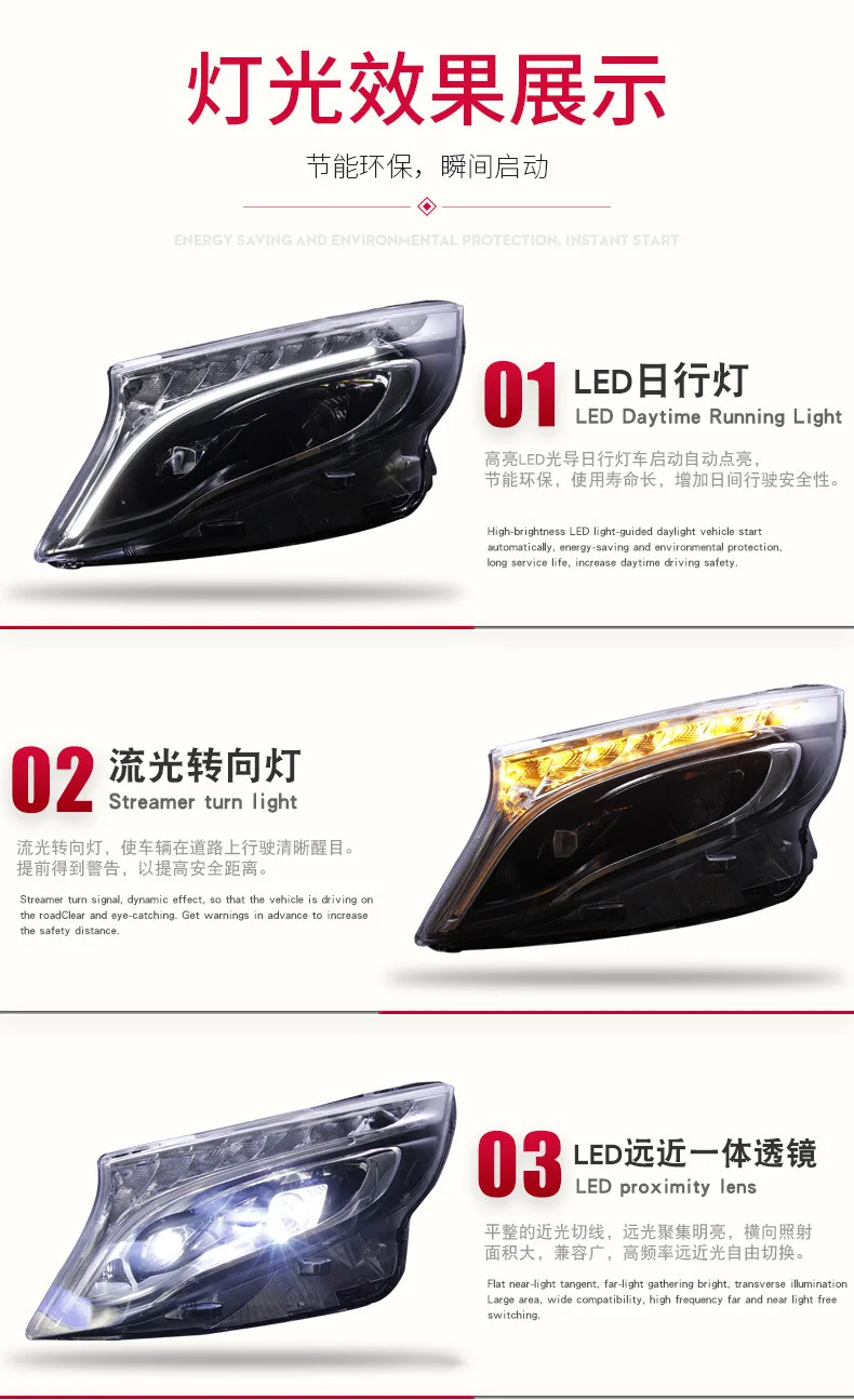 For BENZ V Class VITO LED Headlights Assembly Front Lamp Daytime Running Lights Dynamic Streamer Turn Signal