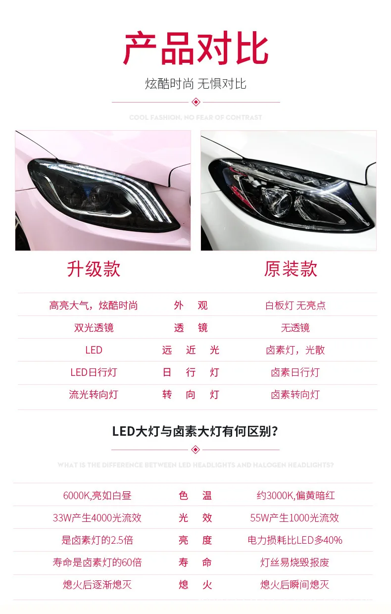 For BENZ W205 Headlights Assembly LED Daytime Running Lights Lighting Accessories Dynamic Streamer Turn Signal Head Lamp