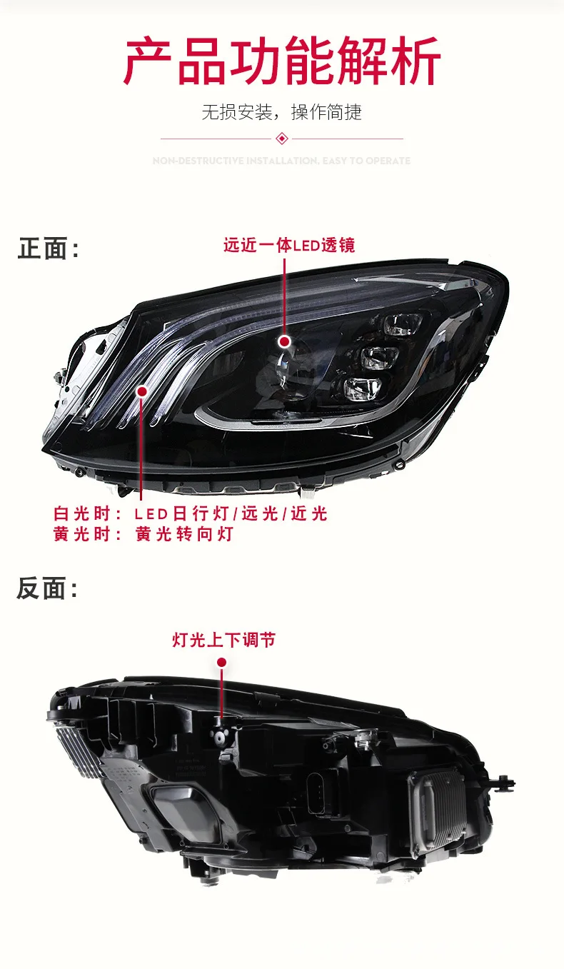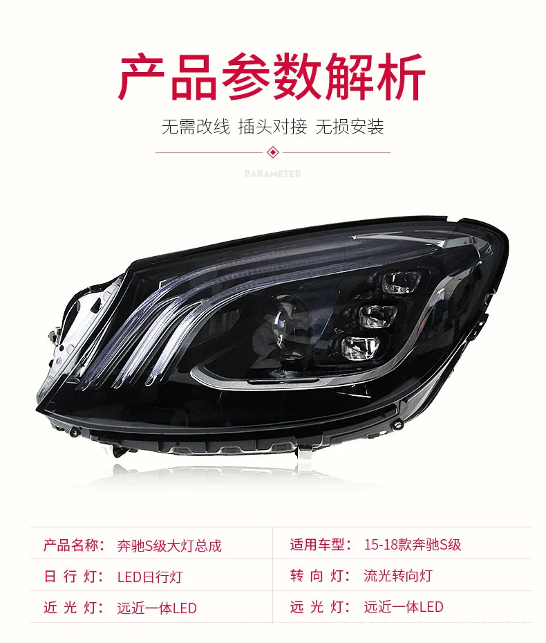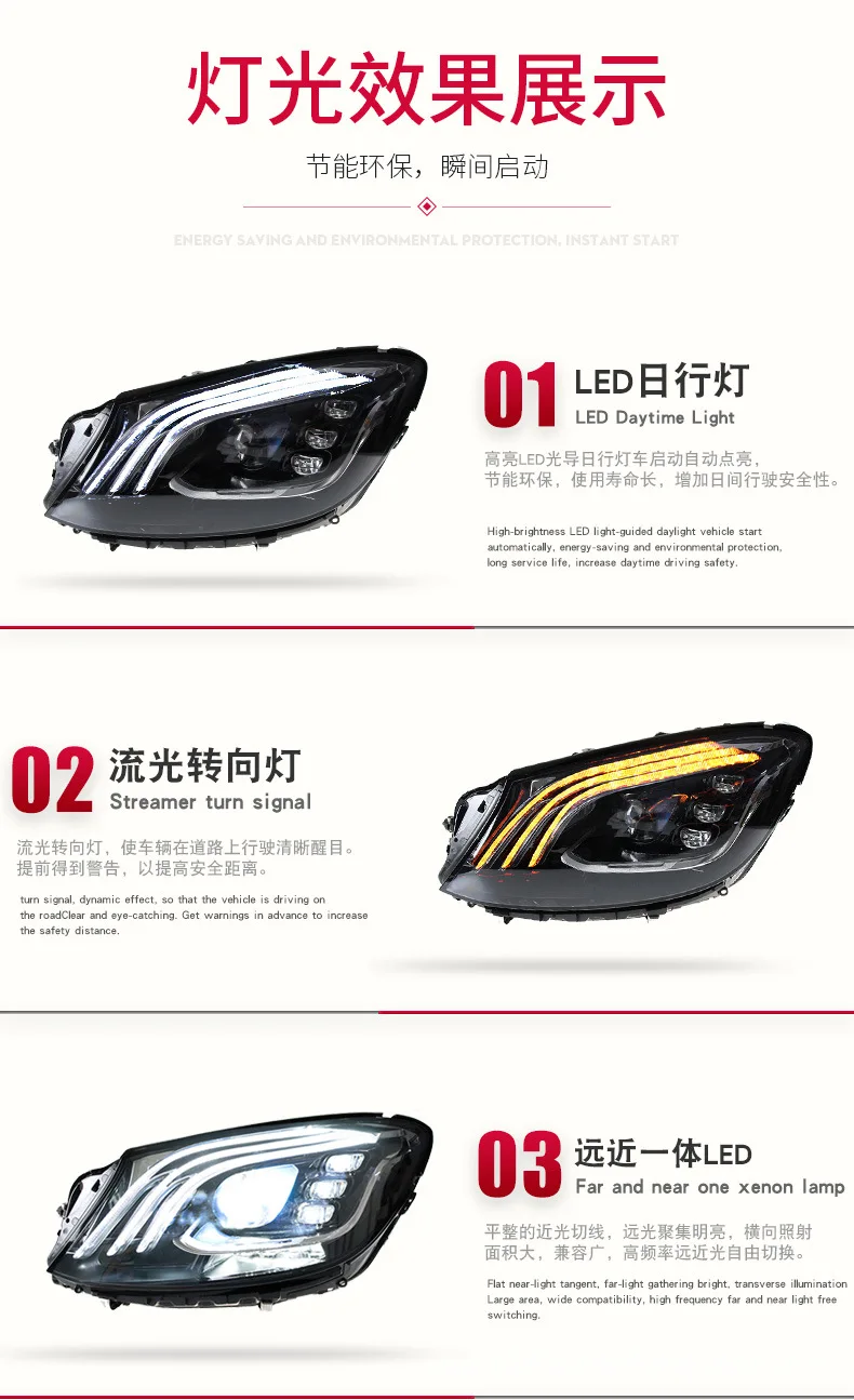 For Benz W222 Headlights Assembly Dynamic Streamer Turn Signal Indicator Front Lamp LED Daytime Running Lights Head Light