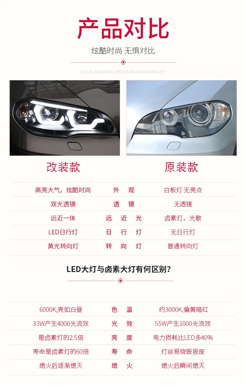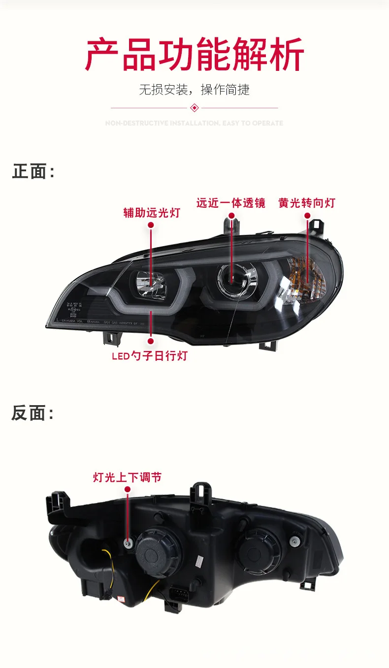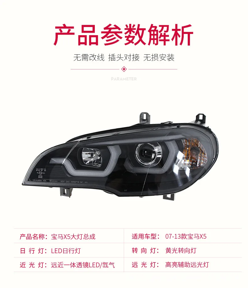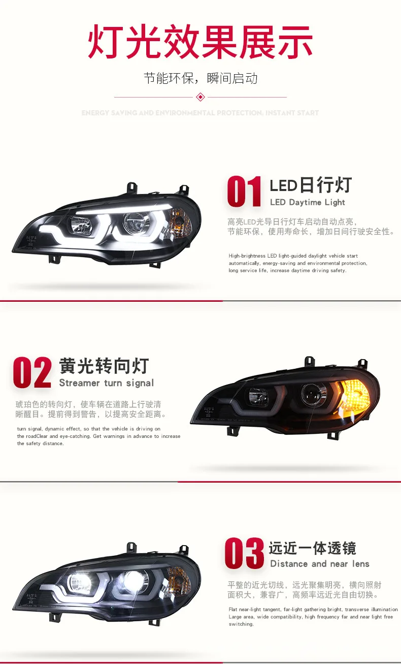 For BMW X5 E70 2007-2013 LED Headlight Assembly Xenon Light Daytime Running Lights Dynamic Streamer Turn Signal Front Lamp