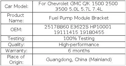 Be the first to review “For Chevrolet GMC C/K 1500 2500 3500 5.0L 5.7L 7.4L New Fuel Pump Module Bracket 25178860 E3622S HP10001 19111415 19180455 FL02”