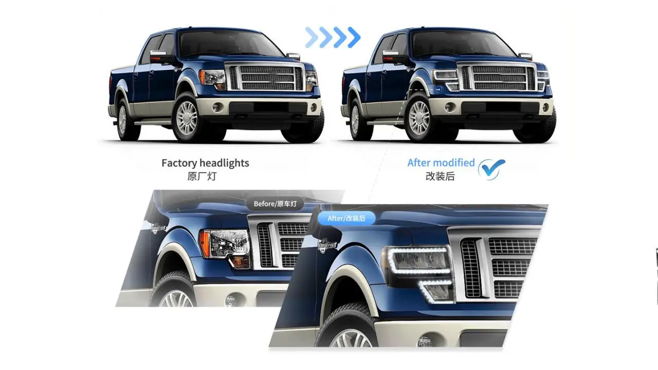 For Ford 2009-2014 F150 Headlight Front Lamp Turn Signal Daytime Running Light Assembly Low Beam Lighting