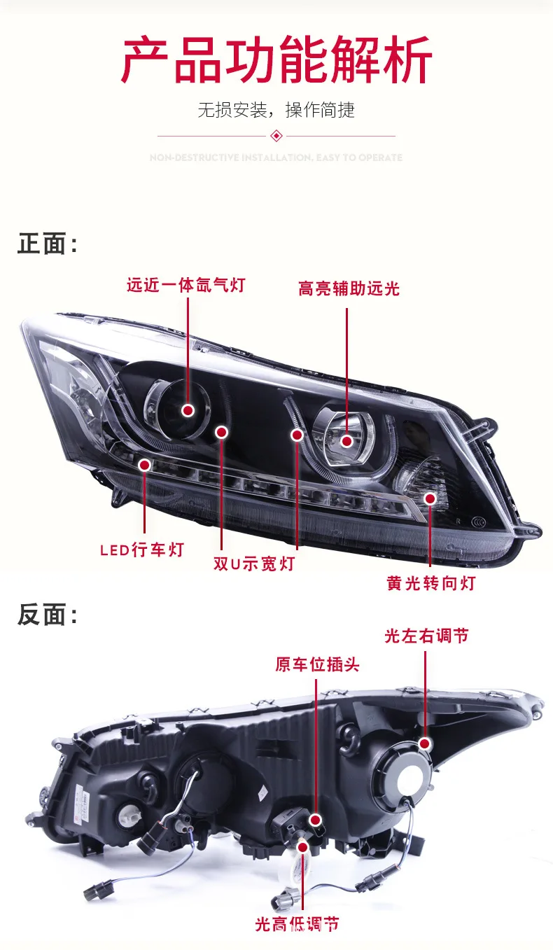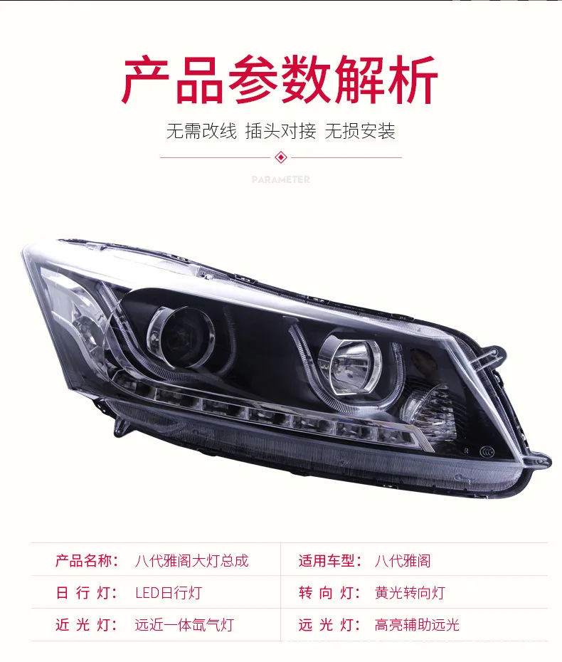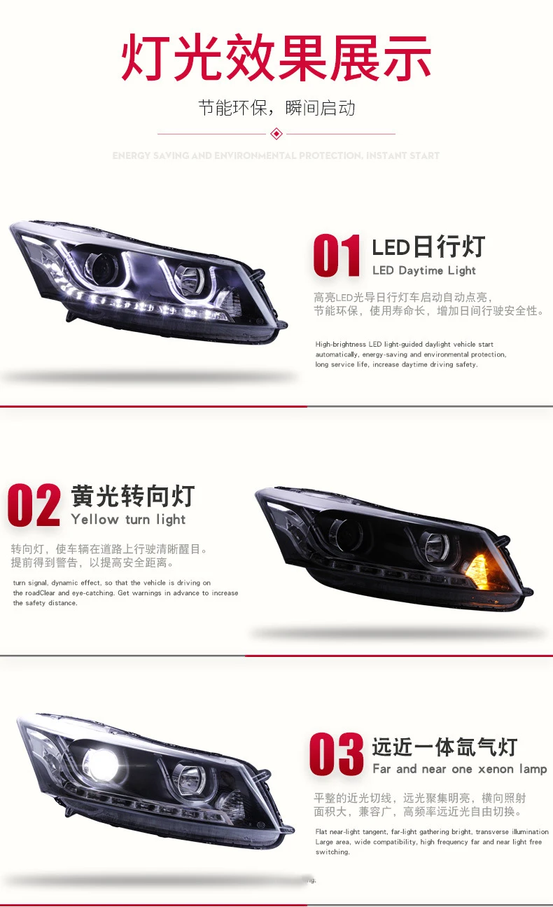 For Honda 8 Accord Headlights Assembly LED Daytime Running Light Xenon Lights Accessories Front Lamp