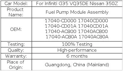 For Infiniti G35 VQ35DE Nissan 350Z Fuel Pump Module Assembly 17040-CD000 17040-CD01A 17040-AC800 17040-AC80A