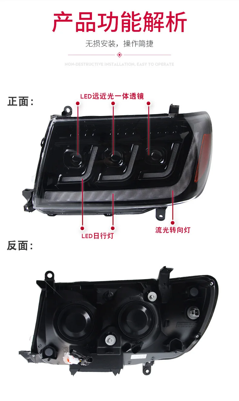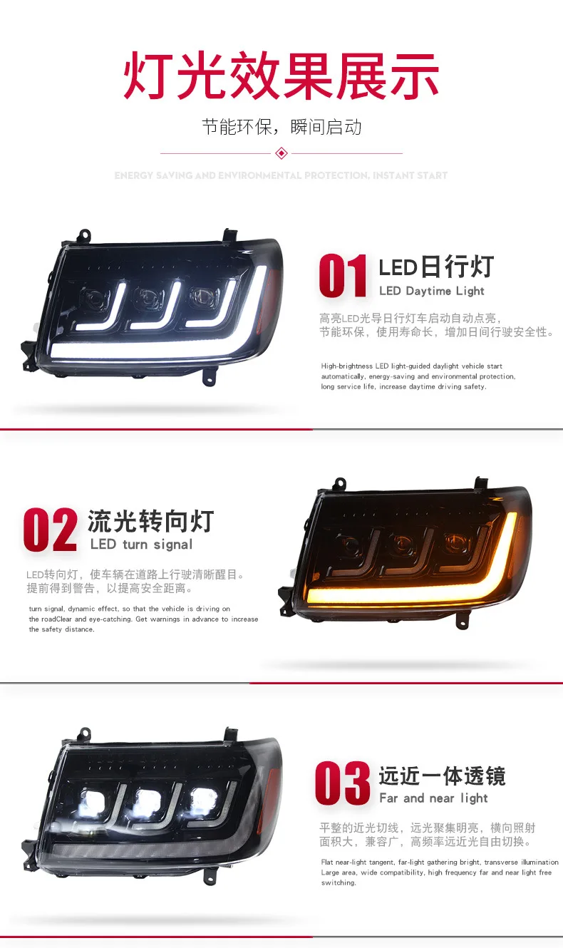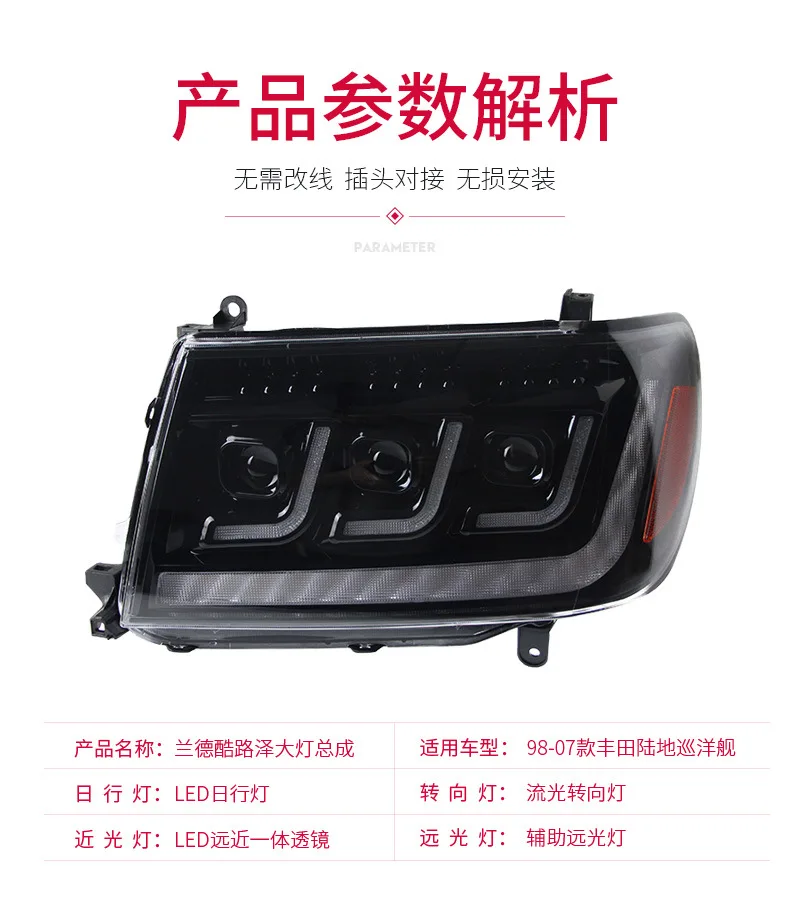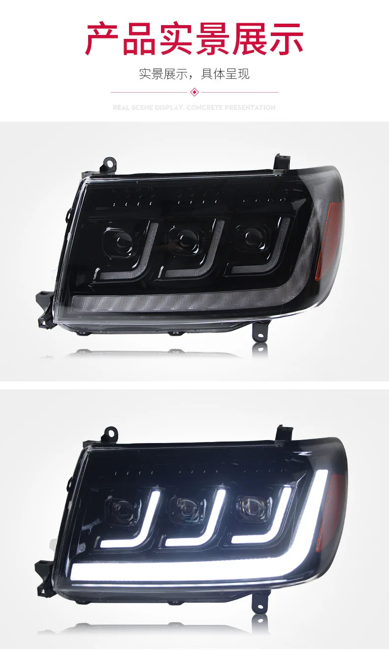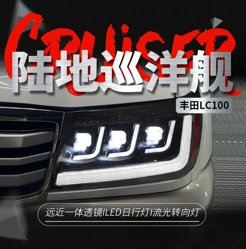 For Toyota Land Cruiser 1998-2007 LC100 4700 Car Headlight Assembly LED Daytime Running Light Dynamic Streamer Turn Signal