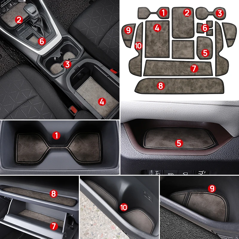 For Toyota RAV4 2019 2020 2021 2022 2023 RAV 4 XA50 Hybrid Car Anti-Slip Gate Slot Cup Mat Door Non-slip Leather Pad Accessories