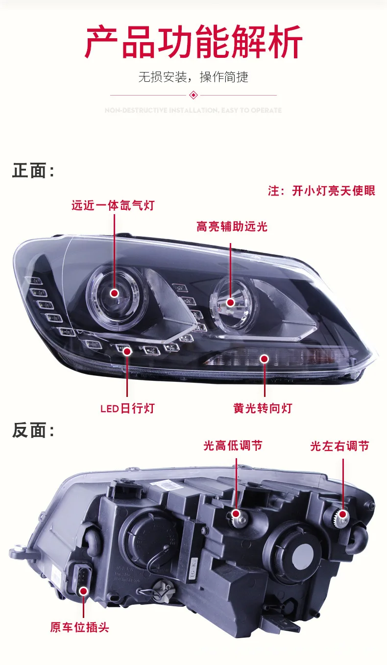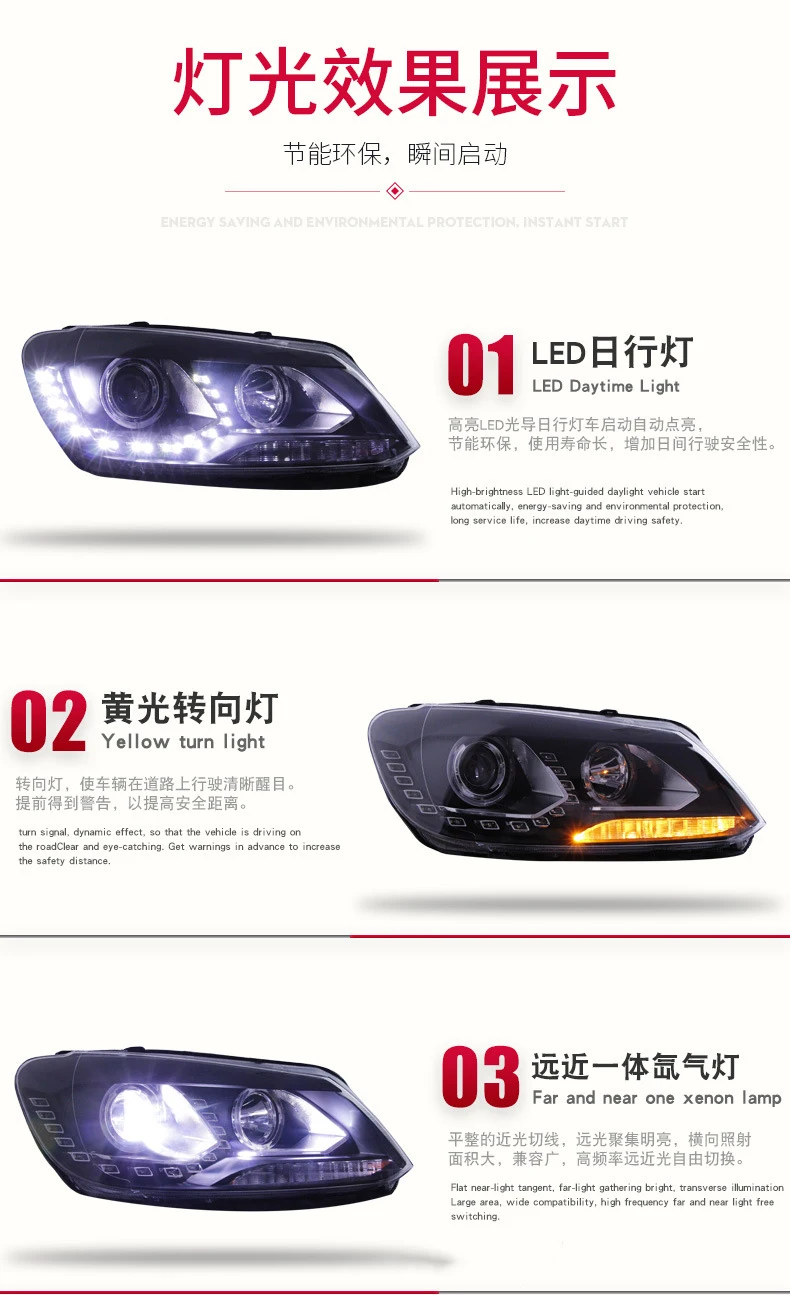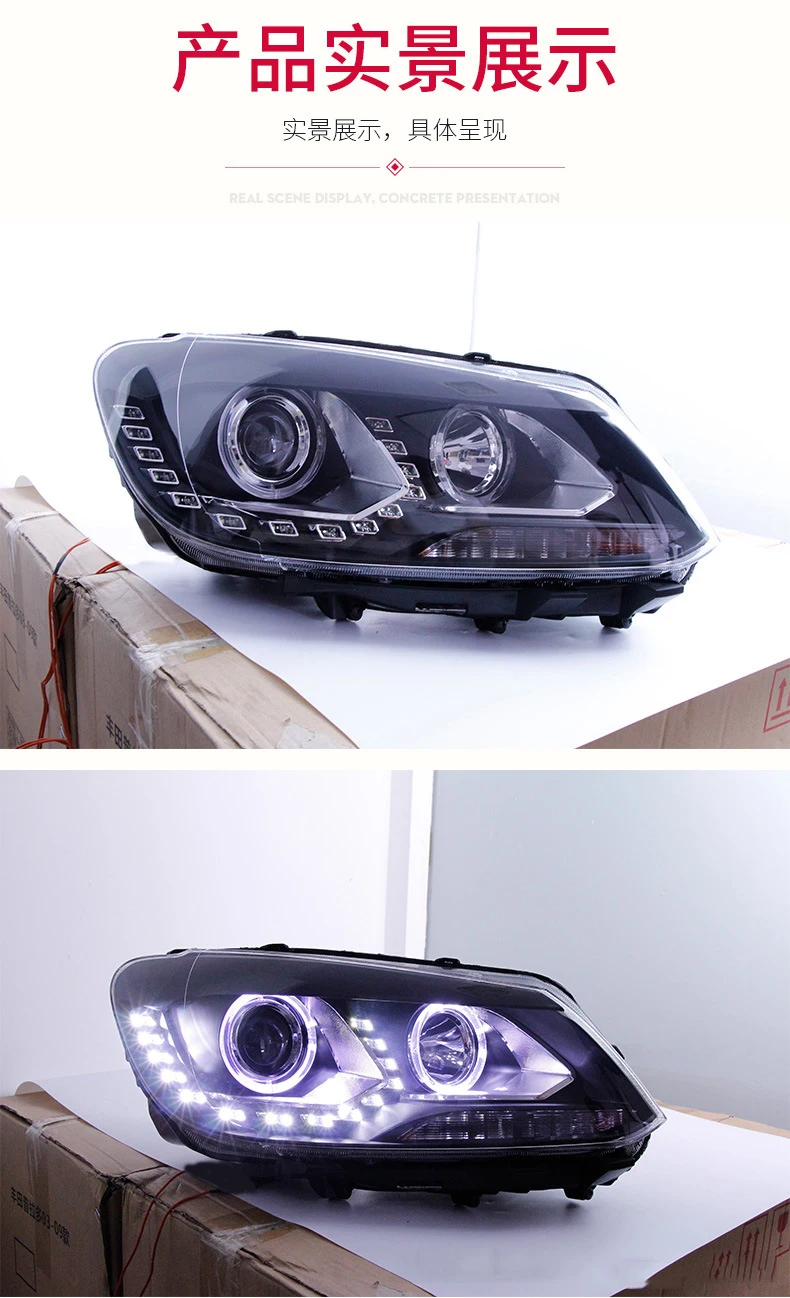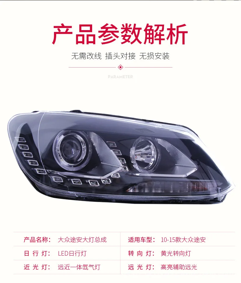 For Volkswagen 13 New Touran 2010-2015 LED Daytime Running Light Headlight Assembly Dynamic Streamer Turn Signal Front Lamp