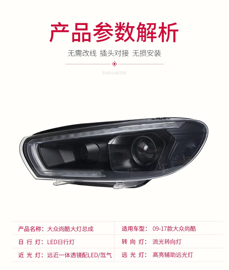 For Volkswagen Scirocco 2009-2017 Dynamic Streamer Turn Signal Indicator Lighting Accessories Front Lamp Headlight Assembly