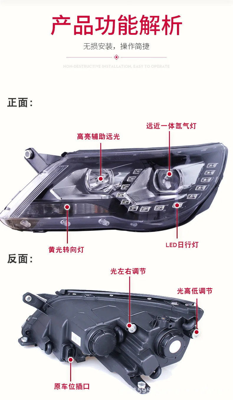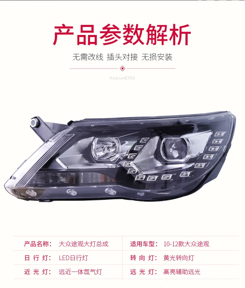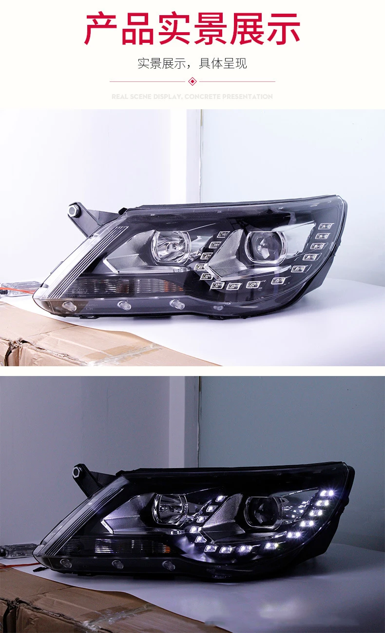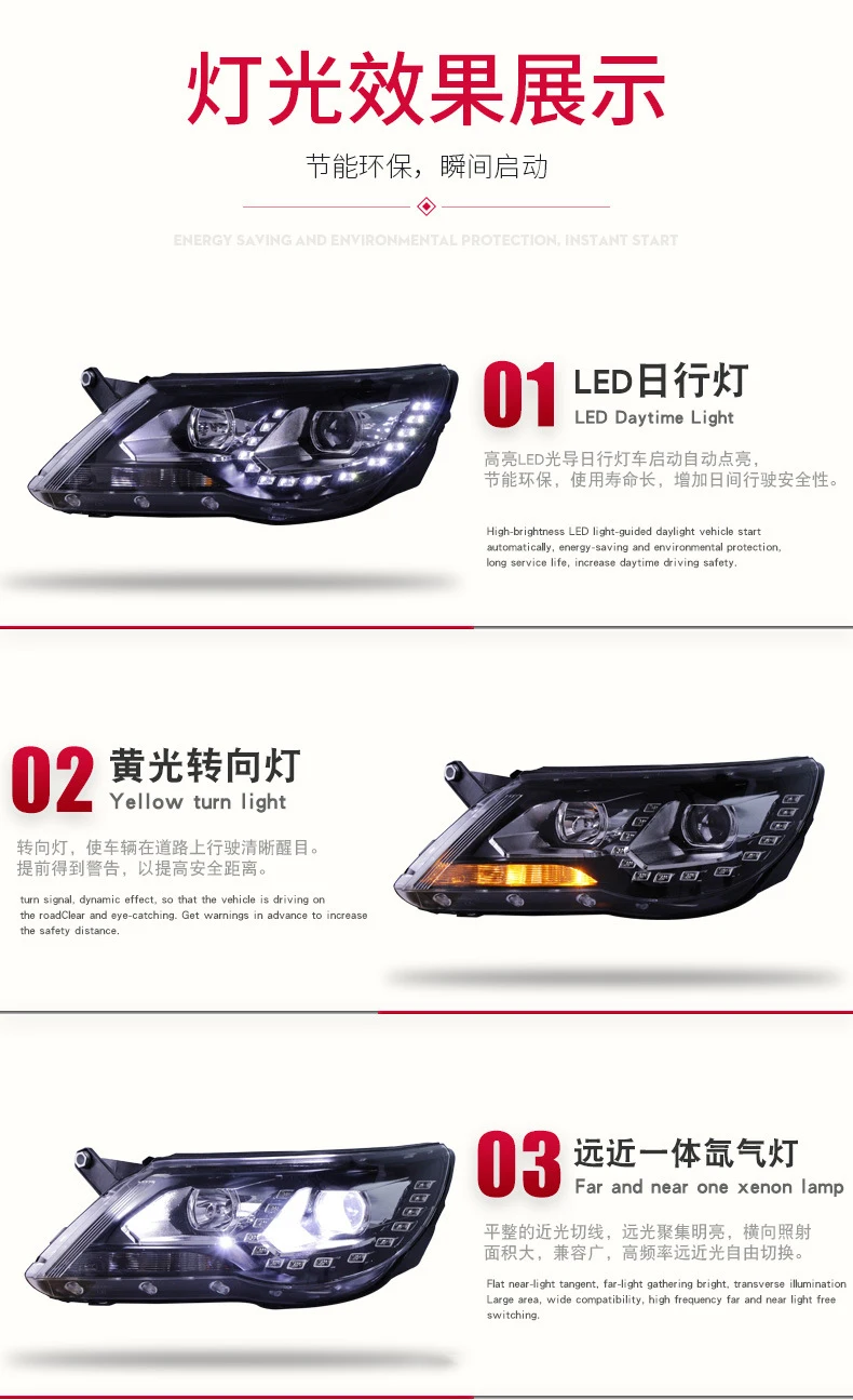 For Volkswagen Tiguan 09-12 Headlight Assembly Dynamic Streamer Turn Signal Indicator Headlamp Front Lamp Lighting Accessories