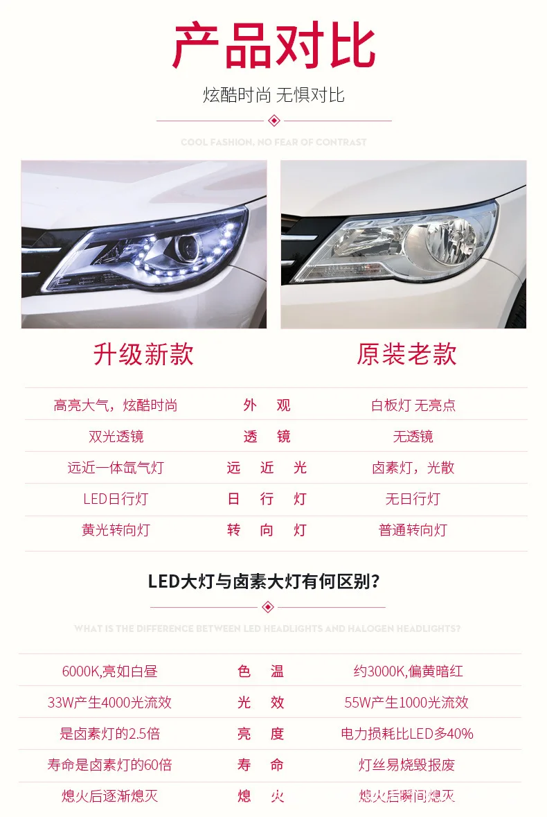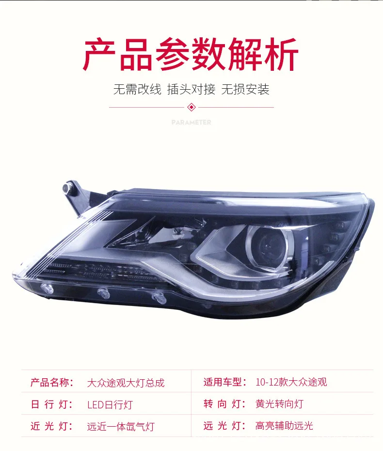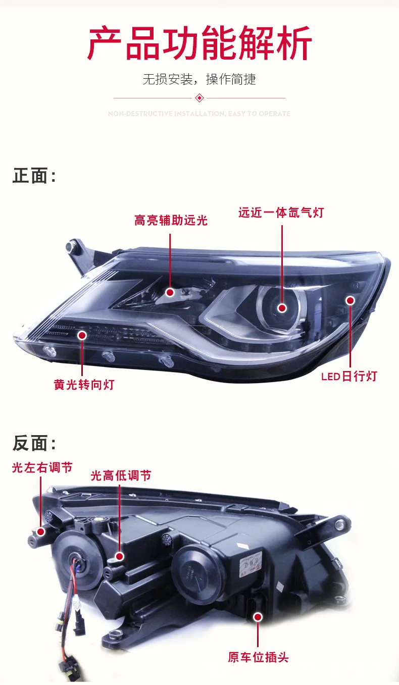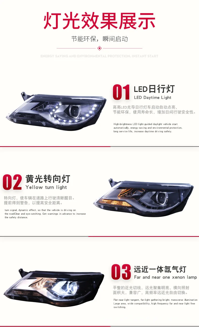 For Volkswagen Tiguan 2010-2012 LED Daytime Running Light Xenon Lamp Headlight Assembly Dynamic Streamer Turn Signal Indicator