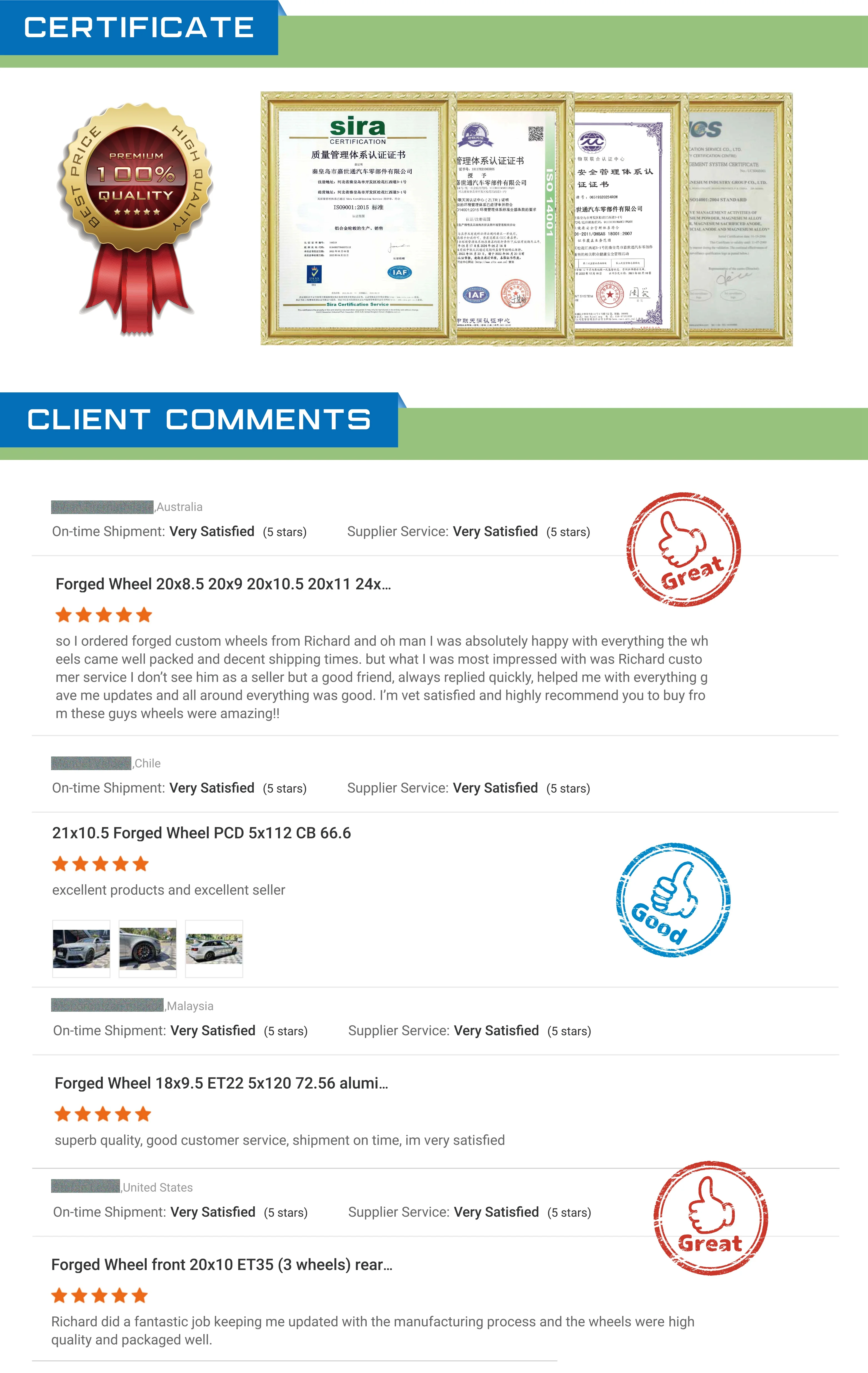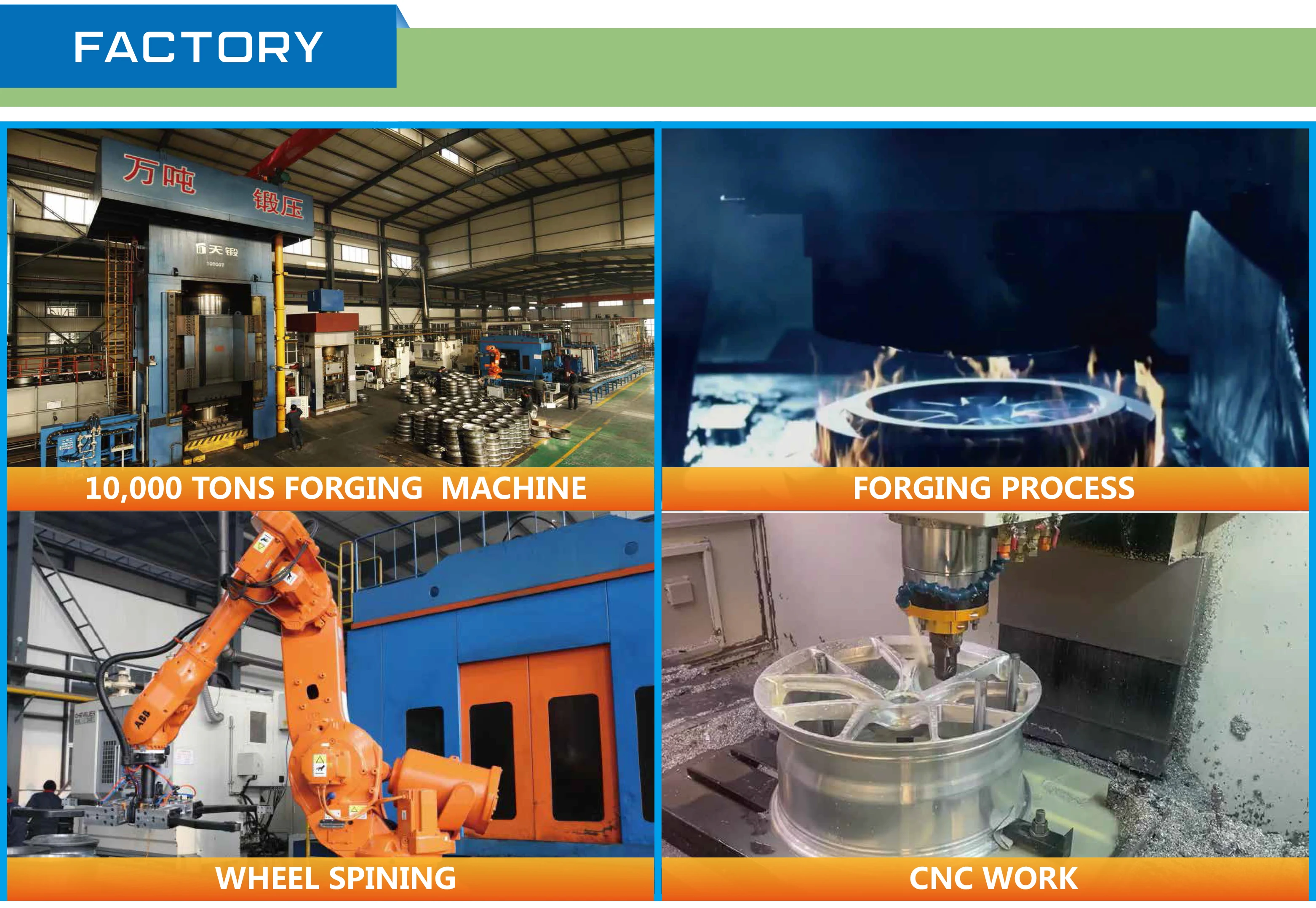 ●10000T Intelligent Forging Production Line ●6061 T6 Aluminum Alloy Aviation Grade ●Annual Production 500,000 Forged Wheels ●Strong teams of R&D, Production & Marketing ●Provide Light, Quality and Safe Wheels for Markets